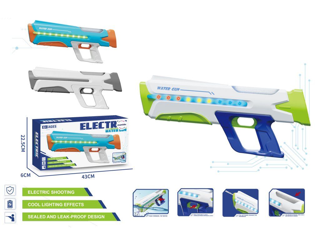 Připravte se na osvěžující letní zábavu s elektrickou vodní pistolí! Díky automatickému střílení, barevnému LED osvětlení a těsnící konstrukci proti úniku vody je tahle pistole ideální volbou pro všechny malé i velké bojovníky. Nabízí silný proud vody bez nutnosti ručního pumpování, takže stačí zmáčknout spoušť a akce může začít!