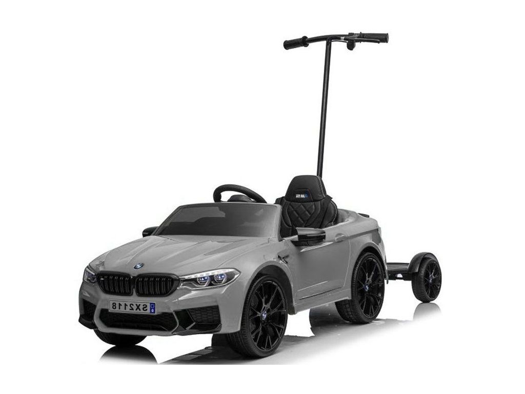 Elektrické autíčko BMW M5 lakované stříbrné s vodící tyčí