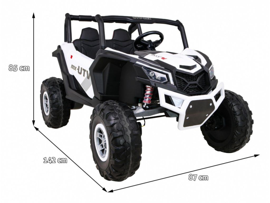 Dětská elektrická Buggy UTV-MX se čtyřmi výkonnými elektrickými motory 60W a baterií 24V 7Ah. O pohodlnou jízdu se postarají velká pěnová EVA kola, která společně s motory zdolají terén či nezpevněný typ povrchu.