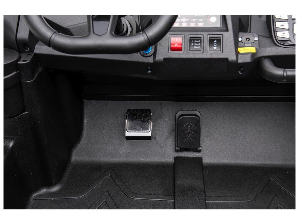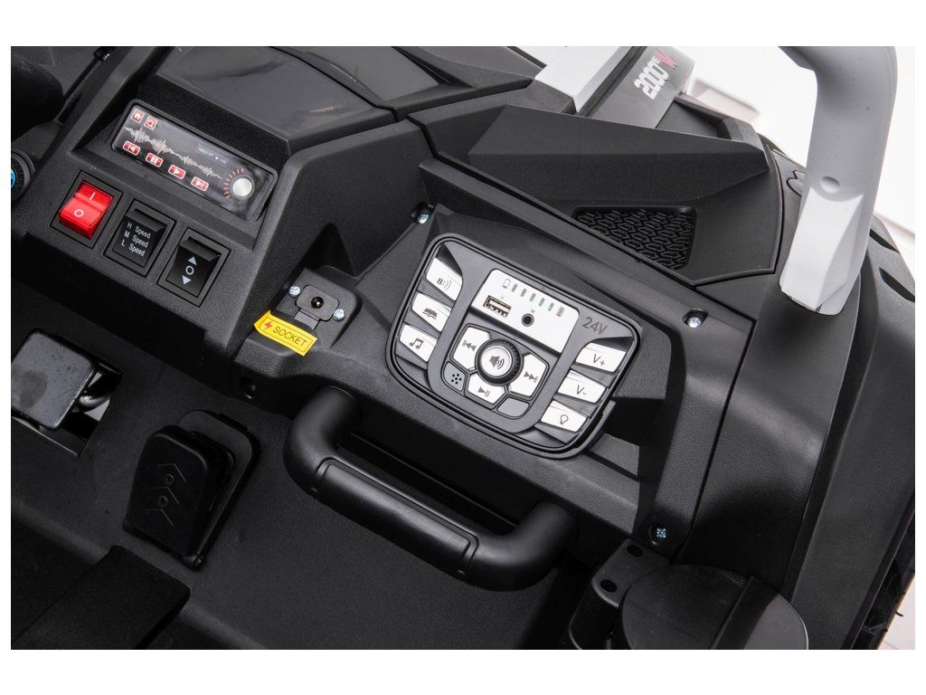 Hudební panel je vybaven vstupem pro USB, MP3, Bluetooth a nachází se zde tlačítka s předehranými melodiemi a klaksonem. Na cestu si posvítíte předními i zadními LED světly.