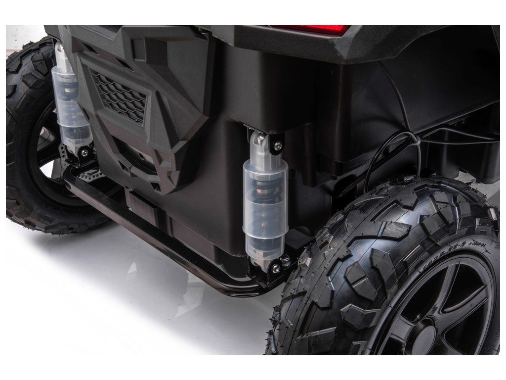 Dětské elektrické autíčko Buggy Strong 24V se vyjímá svými mohutnými nafukovacími koly a nosností do 100 kg. Díky vysoké nosnosti a velikosti autíčka se do něj pohodlně usadí dvě děti. Sedačka je vyrobena z ekologické kůže.