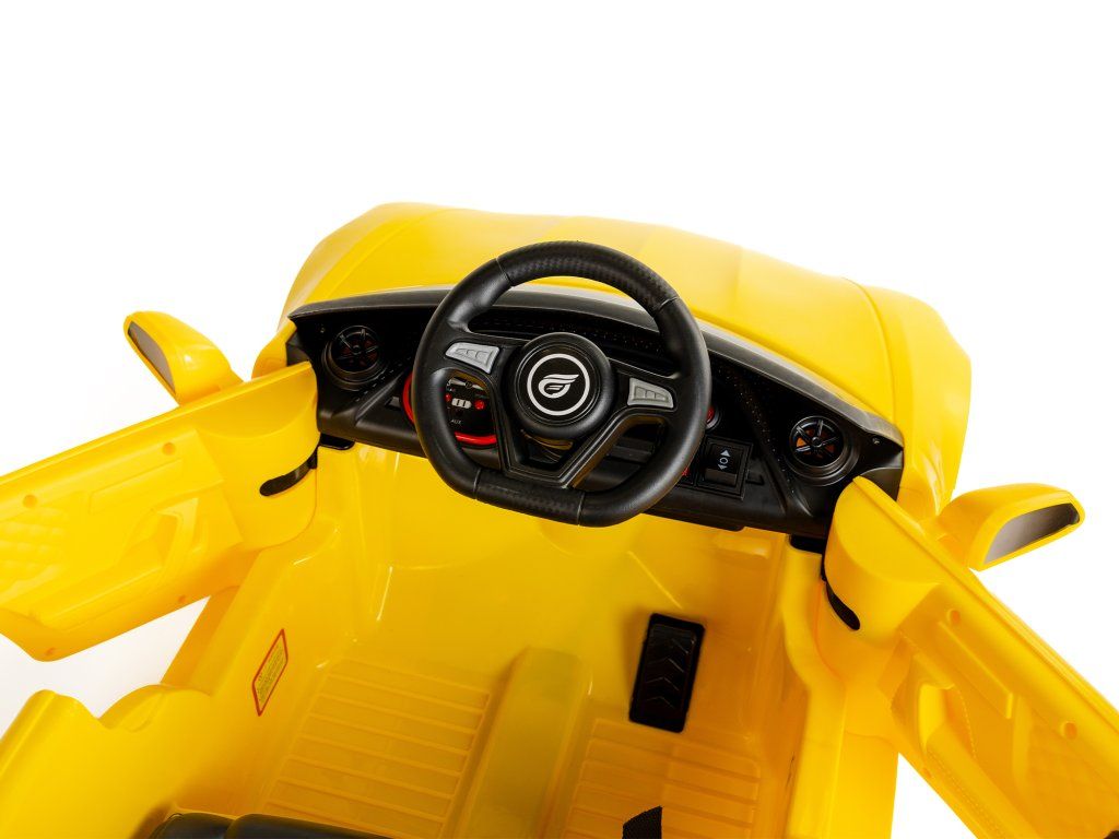 Dětské autíčko Fast Wing s bohatým vybavením a inovativním designem. Interiér autíčka je vybaven sedadlem s bezpečnostními pásy, hudebním panelem se vstupy AUX, MP3, USB a tlačítky s melodiemi. Na cestu si posvítíte předními LED světly.