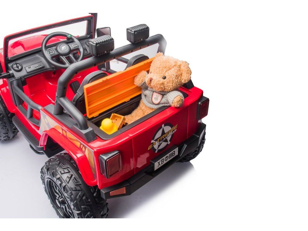 Elektrické autíčko jeep 4Speed má čtyři motory o výkonu 45W a baterii o kapacitě 12V 10Ah. Aautíčko má hudební panel se předehranými melodiemi, vstupy pro USB a Bluetooth. Na volantu je umístěn klaksonem. Autíčko je vybaveno předními LED světly. Autíčko se nastartuje pomocí klíče a uslyšíte charakteristické zvuky motoru.