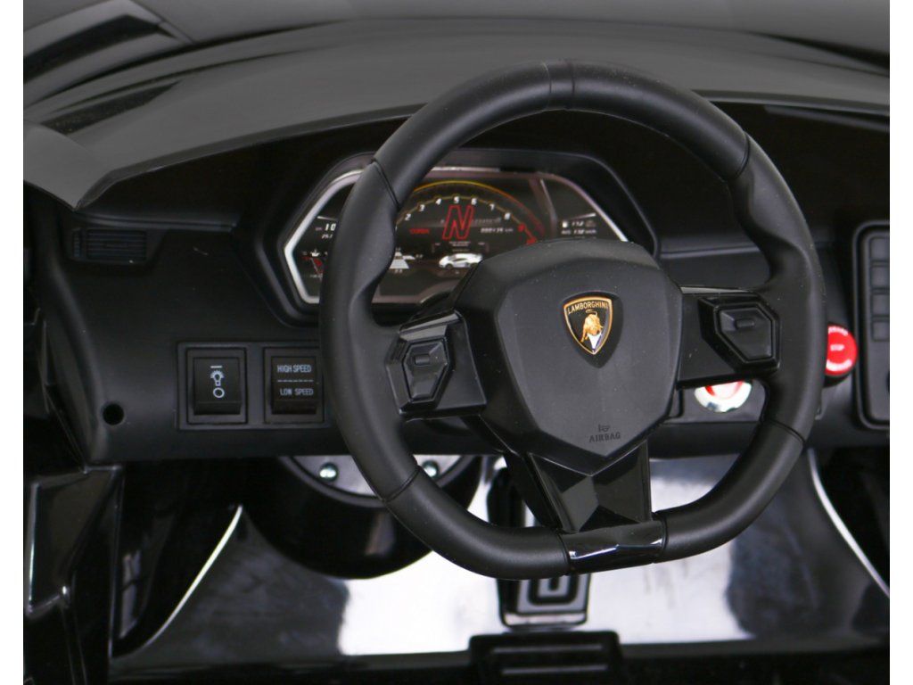 Dětské elektrické autíčko licencované společností Lamborghini je vybaveno exkluzivní sedačkou z ekologické kůže, hudebním panelem se vstupy MP3, USB, tlačítky s předem nahranými melodiemi a předními i zadními LED světly. Při startování uslyšíte charakteristické zvuky motoru.