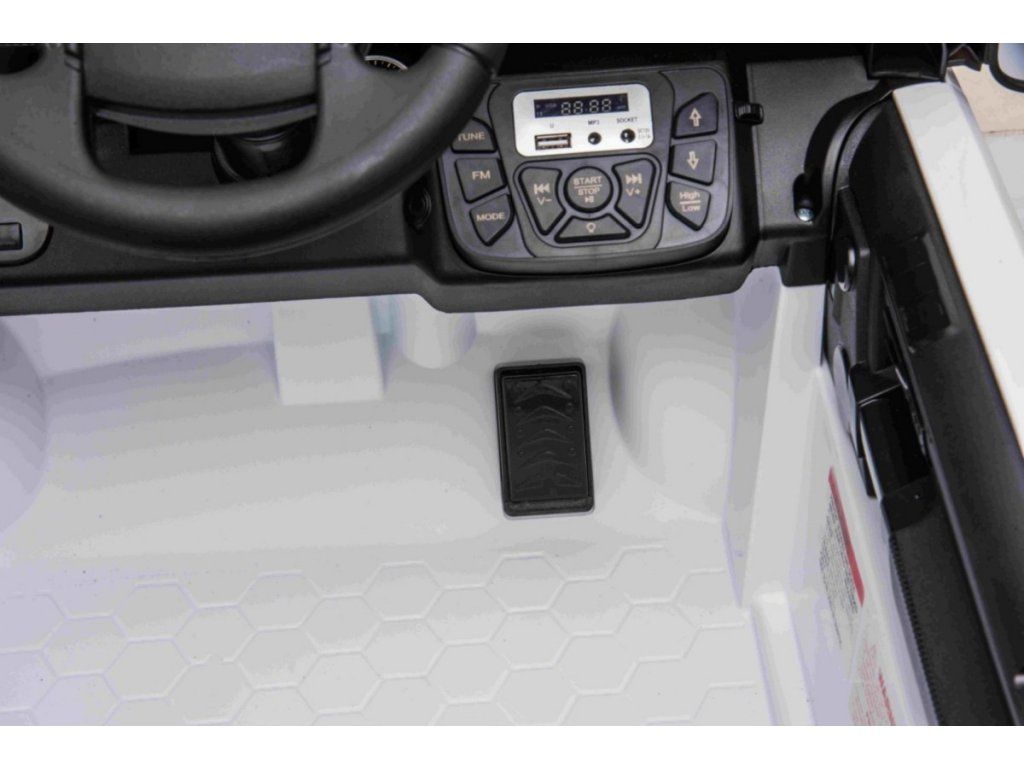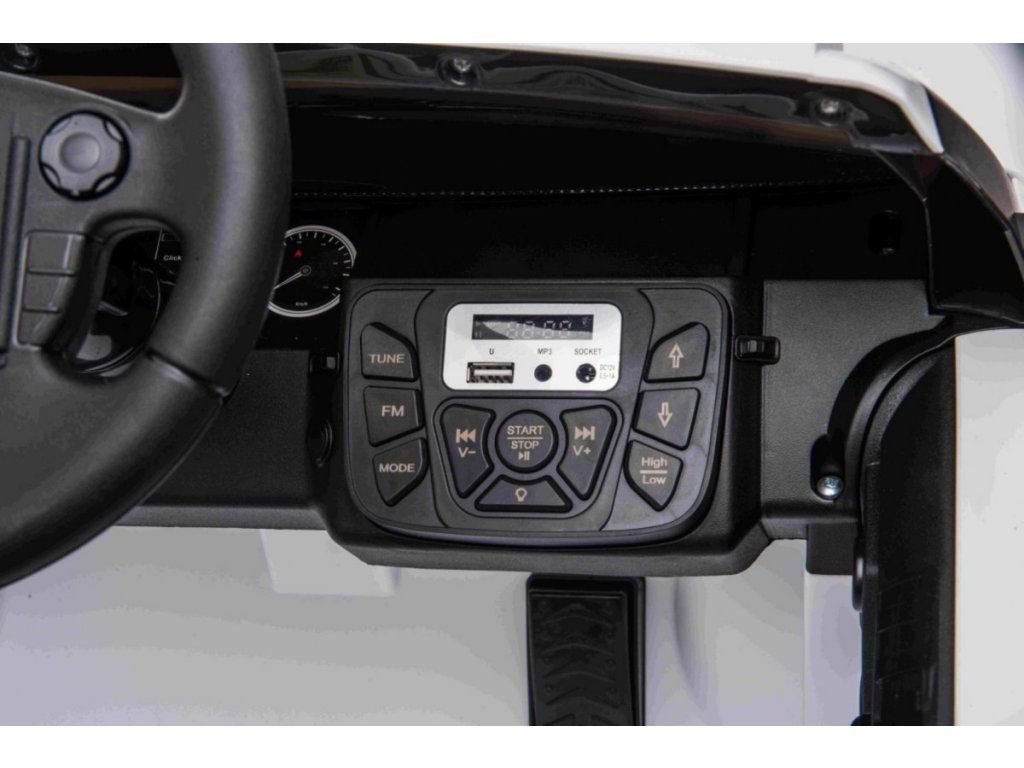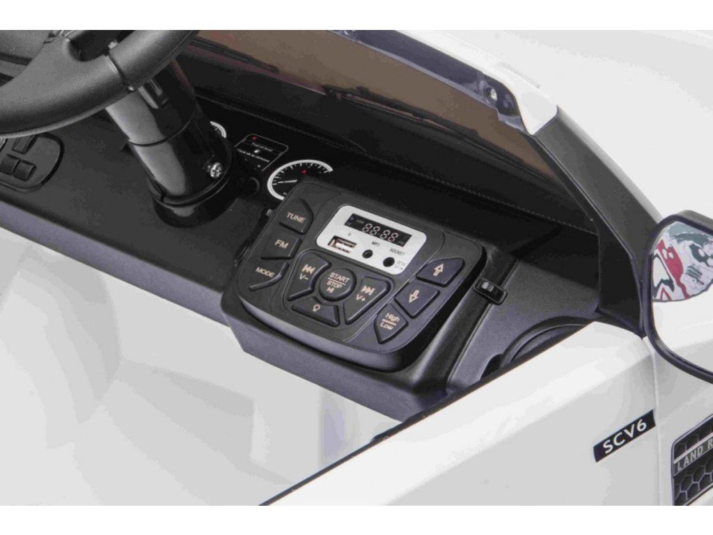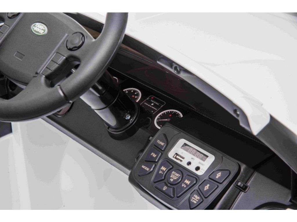 Mezi vybavení patří FM rádio a hudební panel se vstupy MP3, USB a AUX. Land Rover má také předem nahrané melodie.