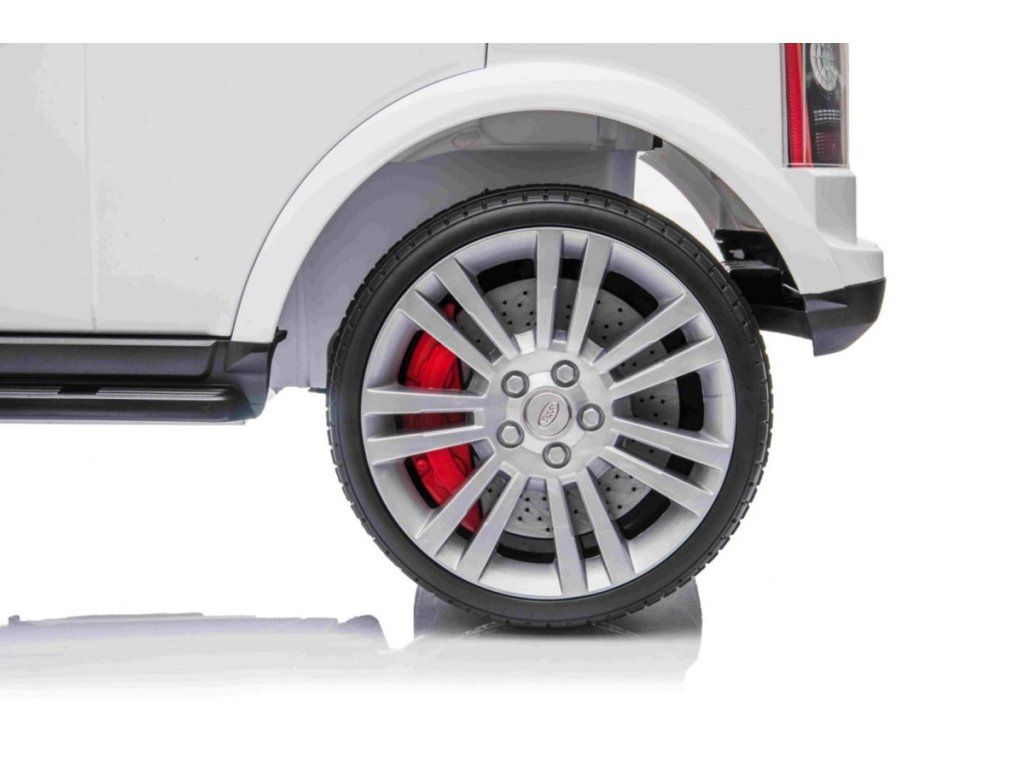 Dětské licencované elektrické autíčko Land Rover Discovery přijíždí na měkkých pěnových Eva kolech, která jsou tichá a přizpůsobí různým typům terénu. Dítě se posadí do pohodlně tvarované sedačky z ekologické kůže s bezpečnostními pásy. Nosnost vozidla je do 30 kg.