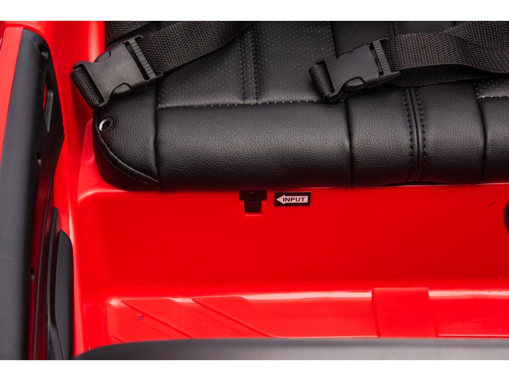 Autíčko má sedačku z ekologické kůže a 3-bodové bezpečnostní pásy, které se postarají o bezpečnou jízdu. Maximální zatížení autíčka je 60 kg. Vozítko má otevírací dveře.