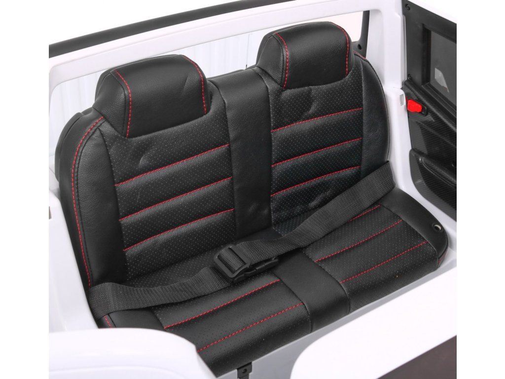 Interiér autíčka je vybaven sedadlem z černé ekologické kůže, MP4 audio panelem a tlačítky na volantu. Autíčko má spínač světel i tlačítko pro výběr pohonu (2 nebo 4 motory).