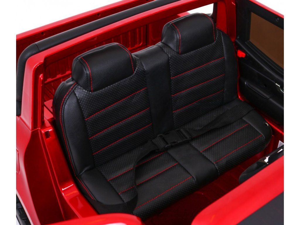 Interiér autíčka je vybaven sedadlem z černé ekologické kůže, MP4 audio panelem a tlačítky na volantu. Autíčko má spínač světel i tlačítko pro výběr pohonu (2 nebo 4 motory).