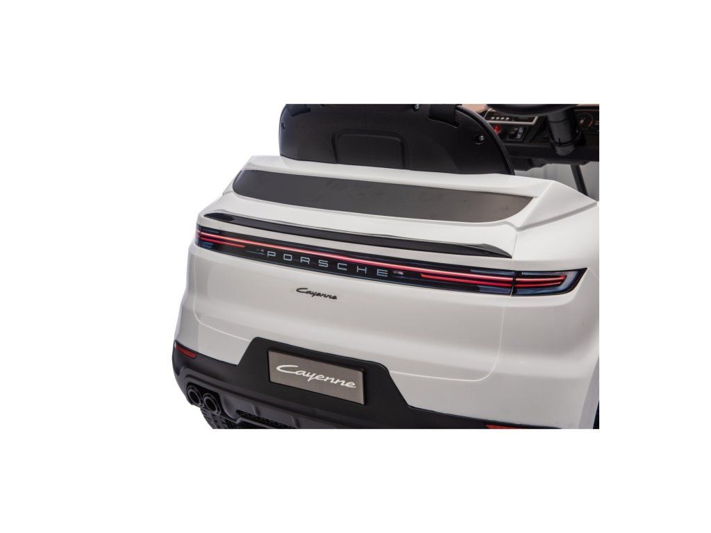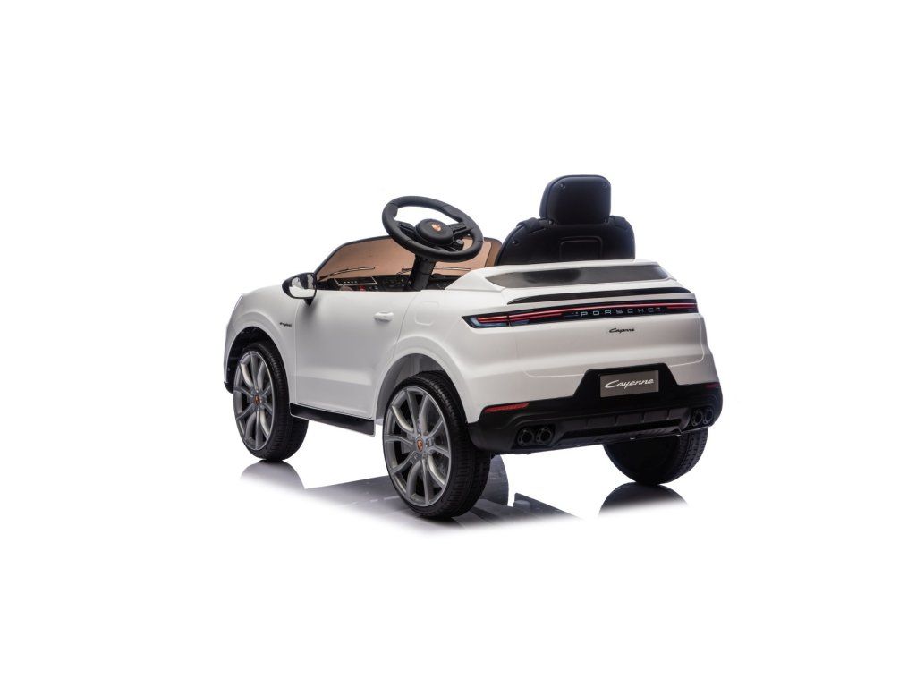 Elektrické autíčko Porsche Cayenne má dva motory s celkovým výkonem 90W a baterii s kapacitou 12V 7Ah. O pohodlnou jízdu se postarají pěnová EVA kola a sedačka potažená ekologickou kůží. Dítěti jízdu určitě zpříjemní hudební panel s MP3, Bluetooth a rádio FM. Nosnost autíčka je 30 kg. Autíčko má přední i zadní LED osvětlení a otevírací dveře.
