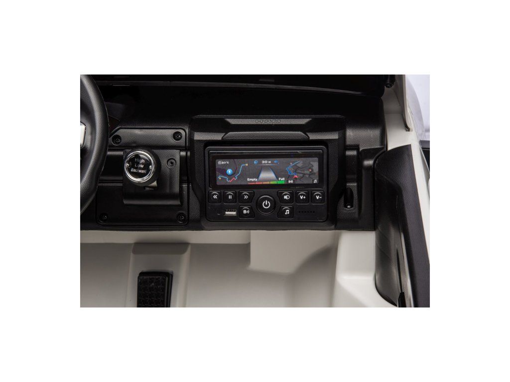Vozidlo lze ovládat i dálkovým ovladačem, který umožňuje regulaci rychlosti, změnu směru jízdy a disponuje bezpečnostním tlačítkem Stop pro okamžité zastavení. Autíčko je vybaveno funkcí automatické brzdy, která se aktivuje po spuštění nohy z plynového pedálu. O bezpečnost se navíc postarají bezpečnostní pásy.