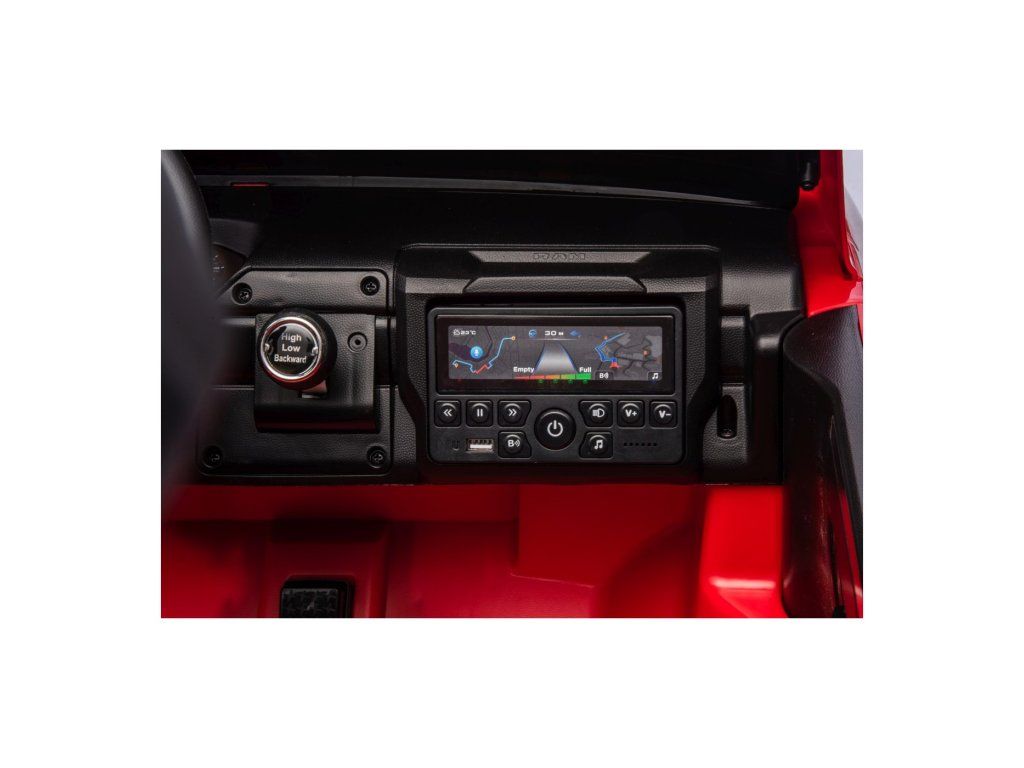 Vozidlo lze ovládat i dálkovým ovladačem, který umožňuje regulaci rychlosti, změnu směru jízdy a disponuje bezpečnostním tlačítkem Stop pro okamžité zastavení. Autíčko je vybaveno funkcí automatické brzdy, která se aktivuje po spuštění nohy z plynového pedálu. O bezpečnost se navíc postarají bezpečnostní pásy.