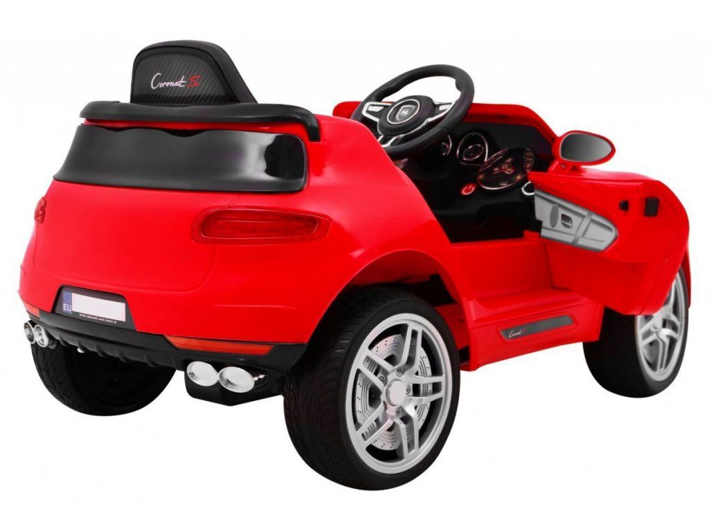 Dětské elektrické autíčko Turbo-S v červené barvě. Elektrické autíčko je vybaveno svítícími předními a zadními světly. Obsahuje přípojku pro MP3, SD kartu a USB. Pro bezpečnost dítěte je na sedačce umístěn bezpečnostní pas. Chcete-li se vydat na projížďku, stačí se jen pohodlně usadit v elektrickém autíčku, a pak zmáčknout tlačítko START. V sadě se nachází i dálkové ovládání pro rodiče, které využijete, když dítě ještě nezvládá řízení autíčka samo.