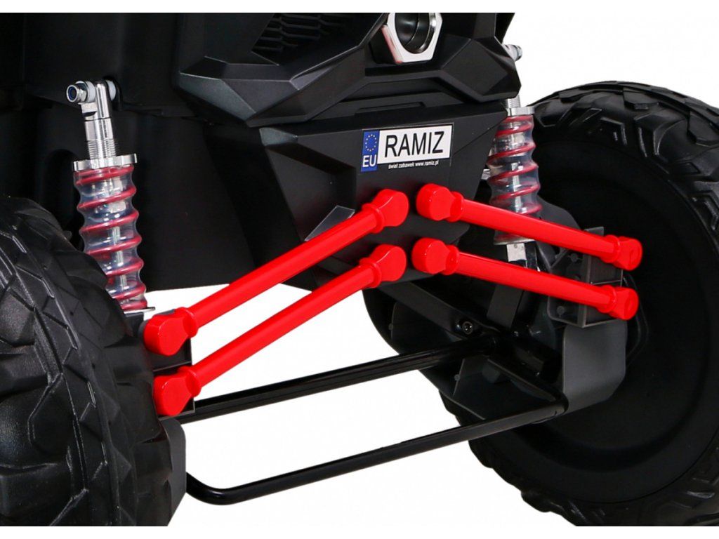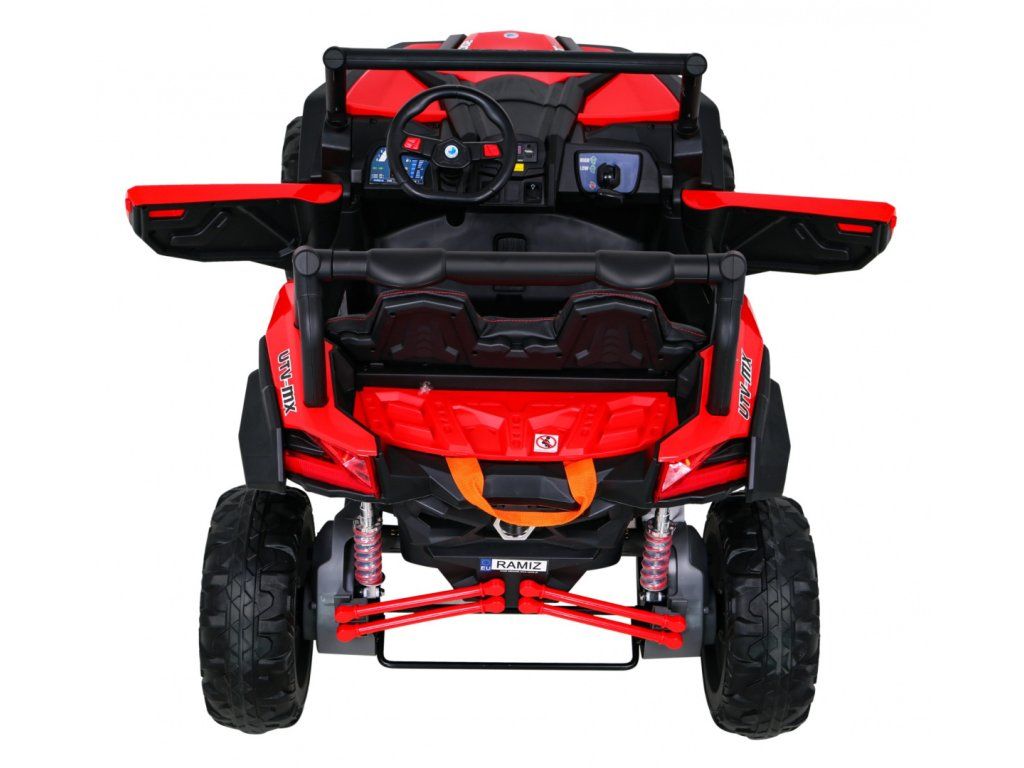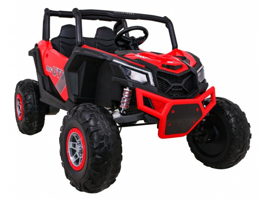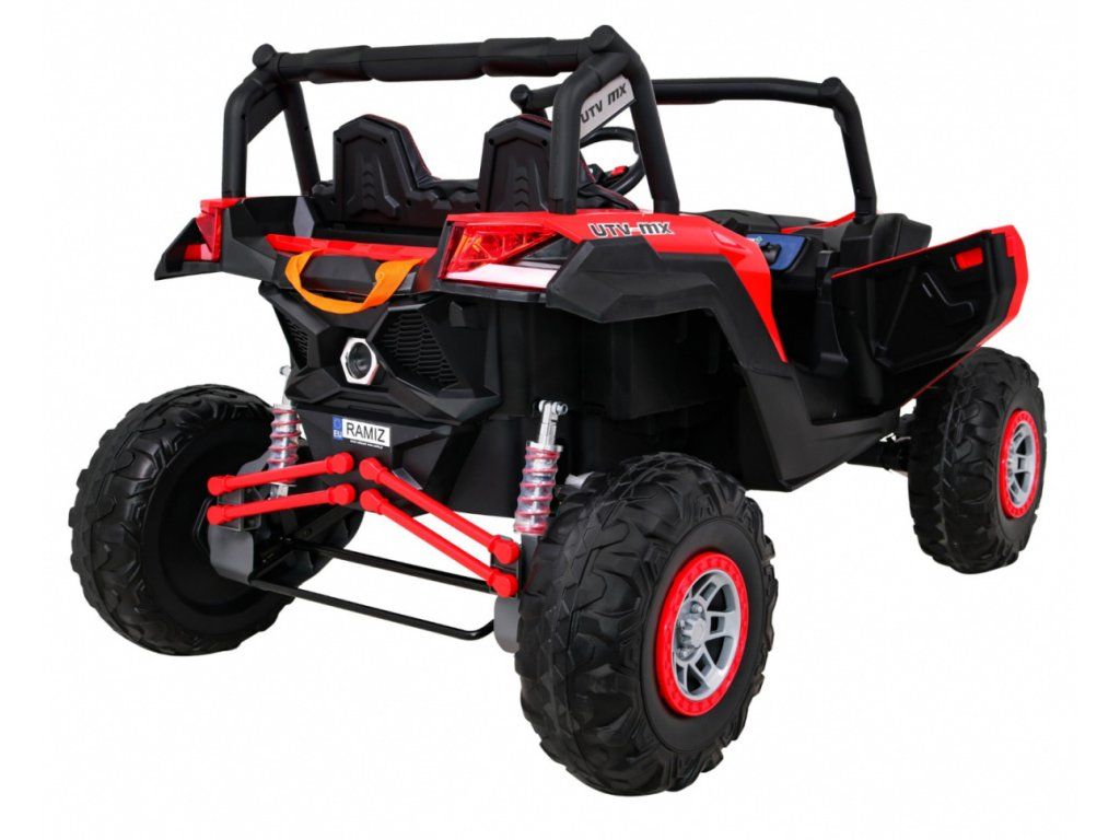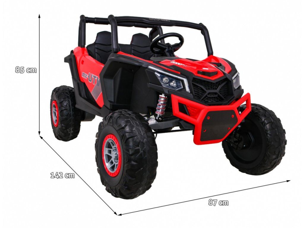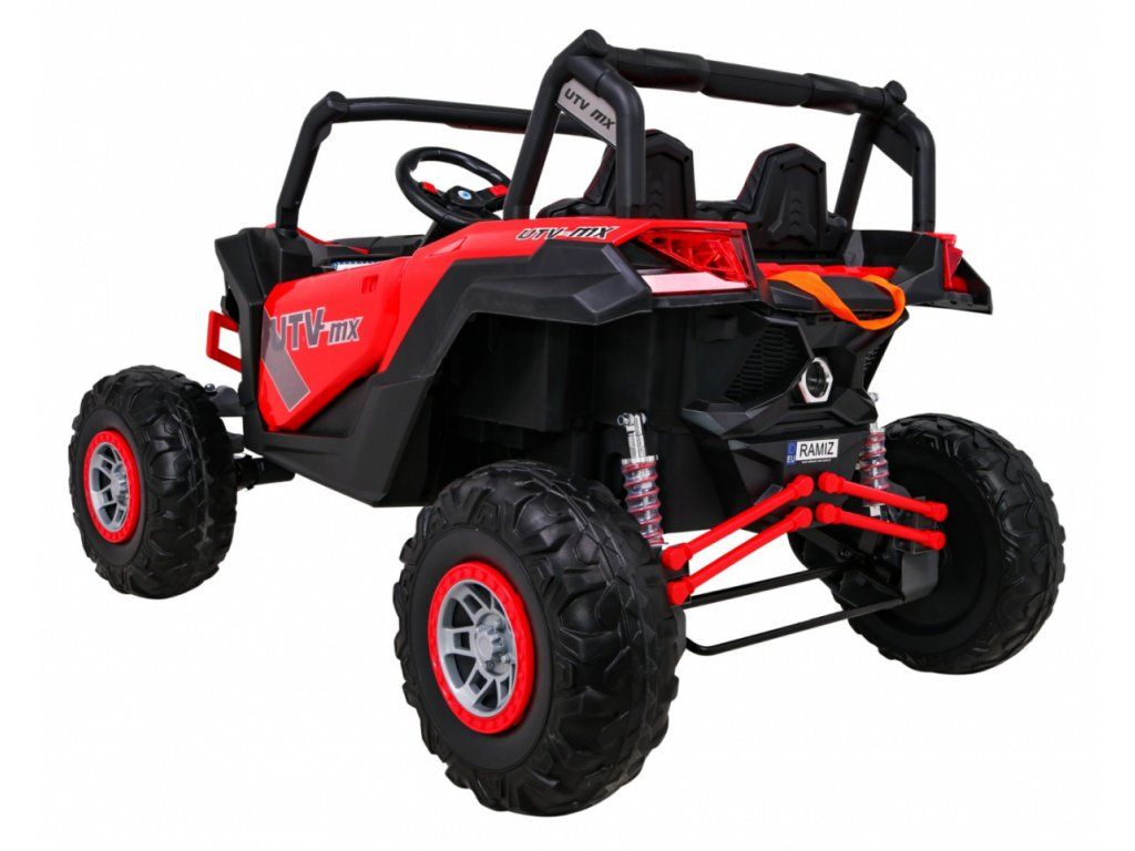 Dětská elektrická Buggy UTV-MX se čtyřmi výkonnými elektrickými motory 60W a baterií 24V 7Ah. O pohodlnou jízdu se postarají velká pěnová EVA kola, která společně s motory zdolají terén či nezpevněný typ povrchu.