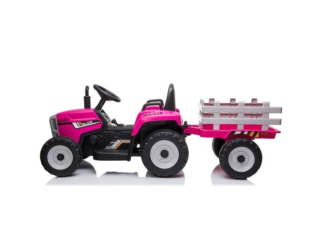 Elektrický traktor s vlečkou růžový