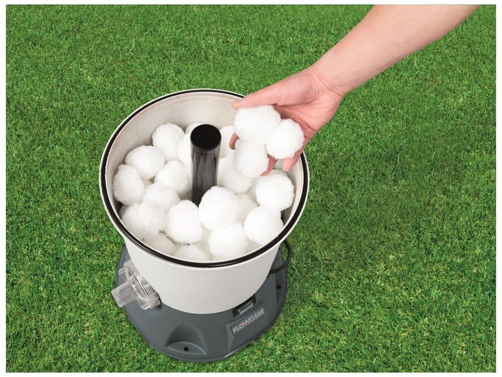 Vzhled kuliček připomíná bavlněné kuličky, jsou lehké a zajišťují rychlejší efekt při filtrování vody v bazénu. Jedno balení může nahradit 18 kg písku. Díky dobré filtraci bude voda v bazénu křišťálově čistá.