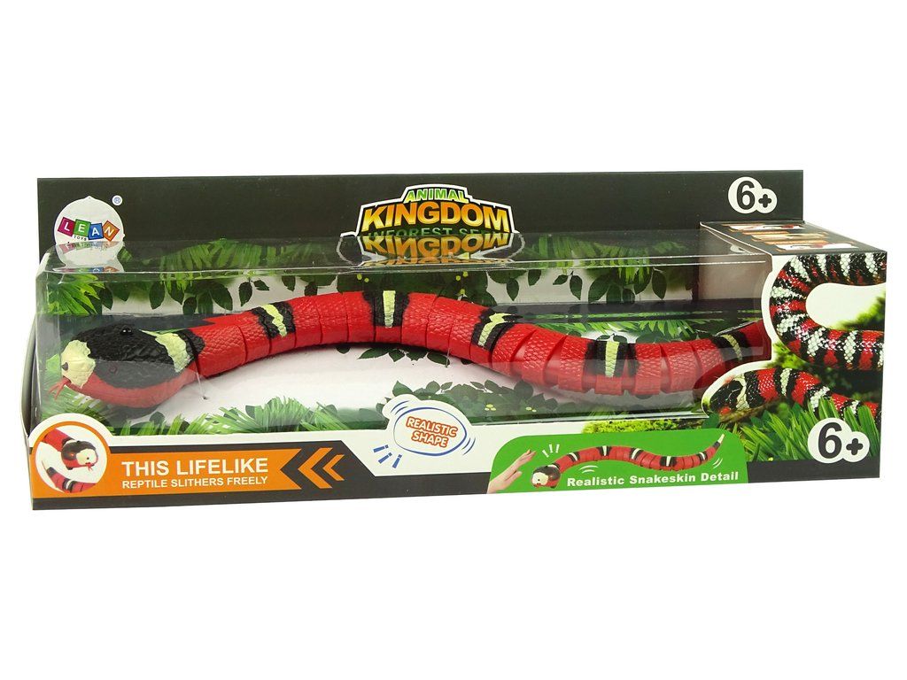 Had je červený s černými výraznými pruhy. Nabíjení probíhá přes USB. Aktivuje se dotykem. Stačí přiblížit ruku hadovi k hlavě a uvidíte, jak se začne plazit po podlaze závratným tempem. Při plazení vyplazuje jazyk a zatahuje ho.