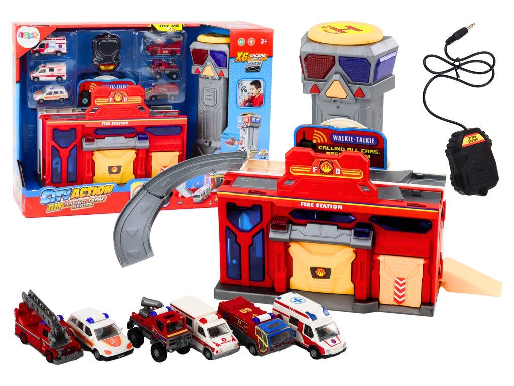 Dětská hasičská stanice s řídícím centrem a 6 autíčky