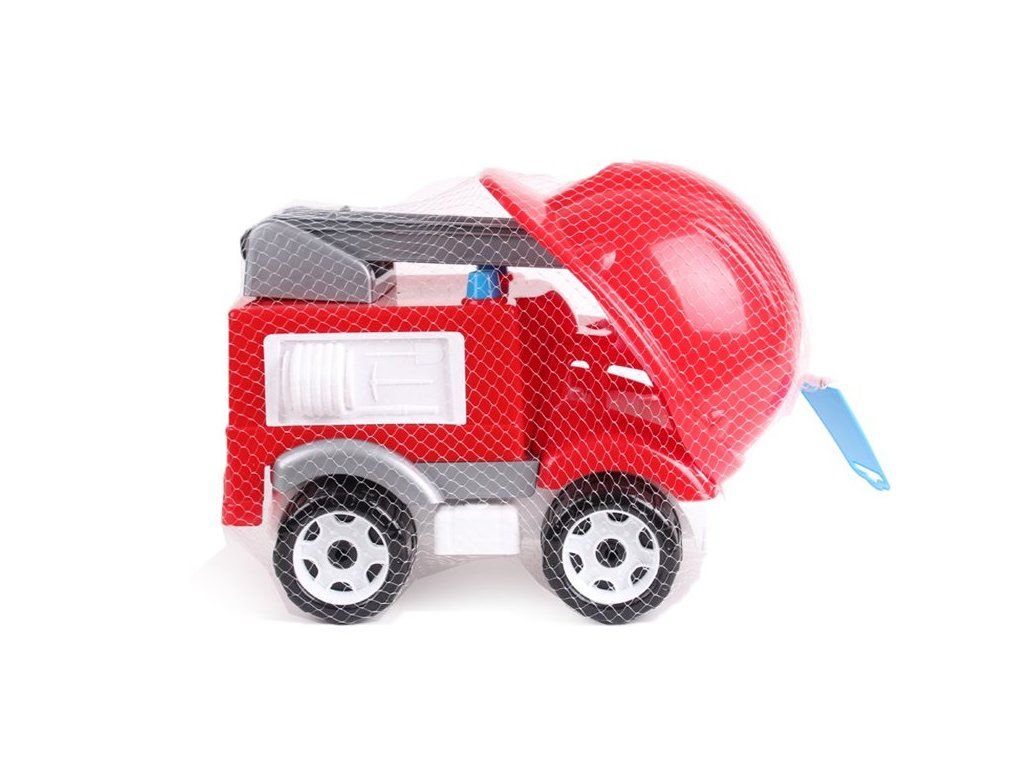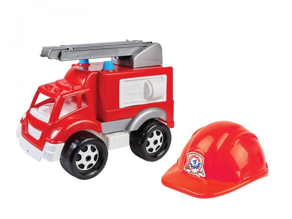 Hasičské auto s žebříkem a helmou