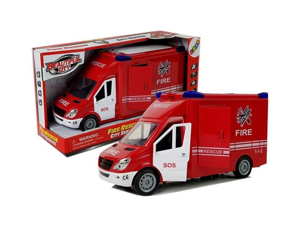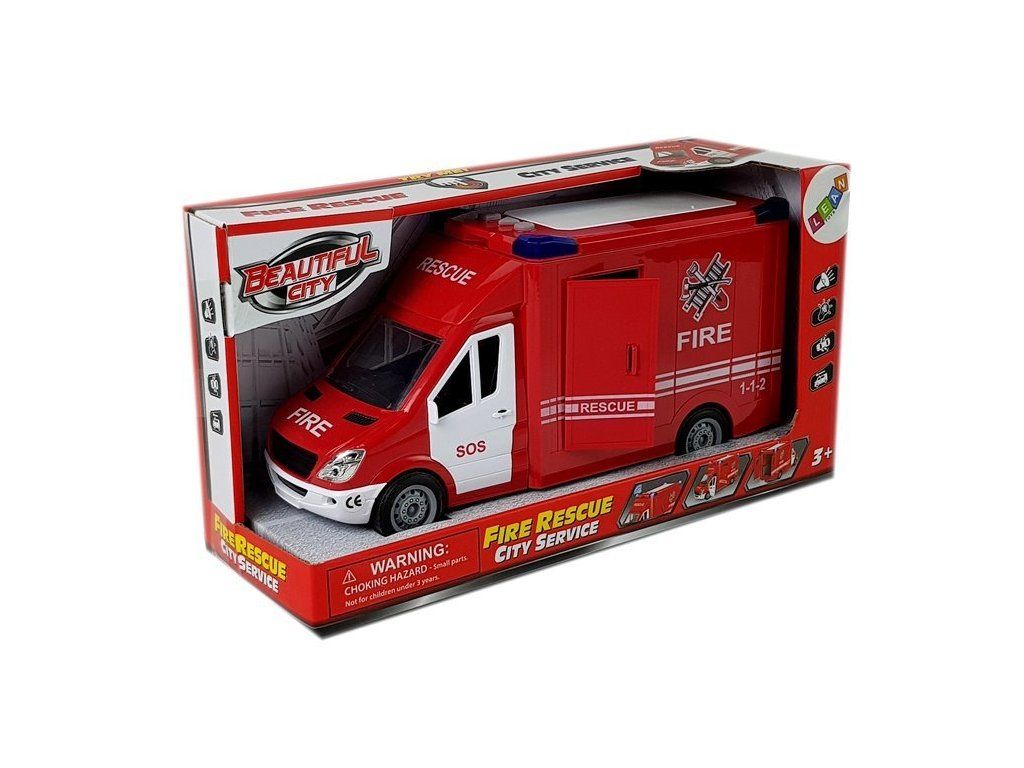 Hasičské auto se bude jistě vyjímat mezi hračkami v polici. Má zvukové efekty, jako je zvuk startování, klakson a sirény. Celek doplňují blikající sirény. Autíčko lze velmi jednoduše ovládat, smí jezdit doprava, doleva, vlevo i vpravo.