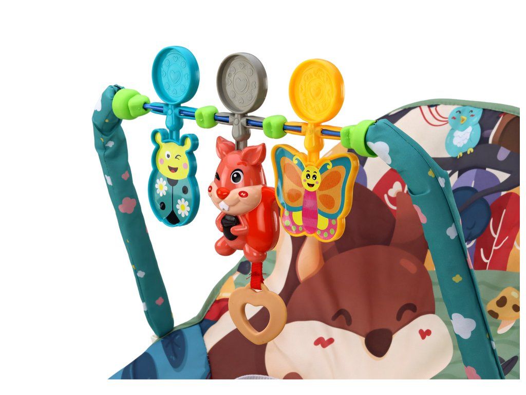 Dětské houpací křeslo s roztomilým motivem lesních zvířátek. Naše houpací křeslo je nejen pohodlným místem pro odpočinek vašeho batolete, ale také interaktivní hrací plochou, která stimuluje jeho rozvoj.