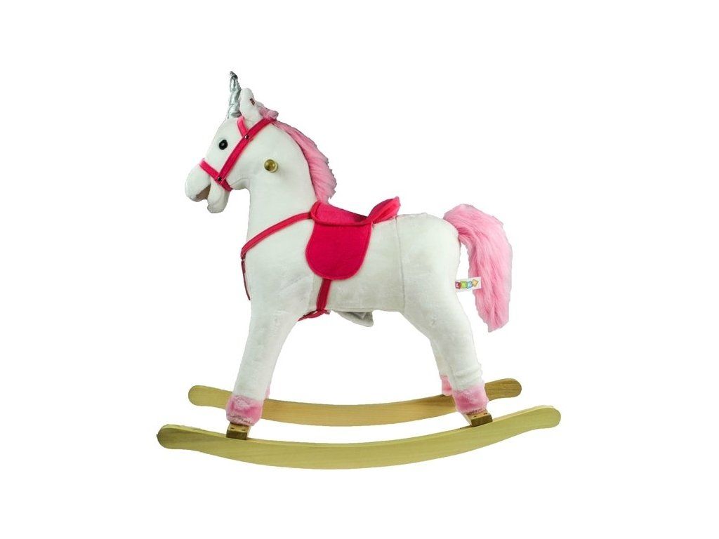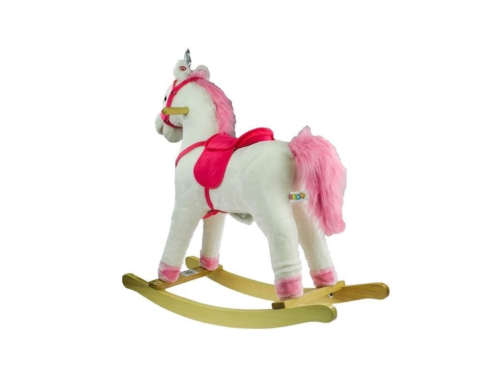 Houpací koník je vyrobený z měkkého plyše, má dřevěné rukojeti a dřevěný podstavec. Vydává zvuky cvalu a řehtání. Skvělá hračka pro všechny malé princezny. Má bílou barvu, kterou doplňují krásné růžové prvky jako je ocas, hříva či sedlo.
