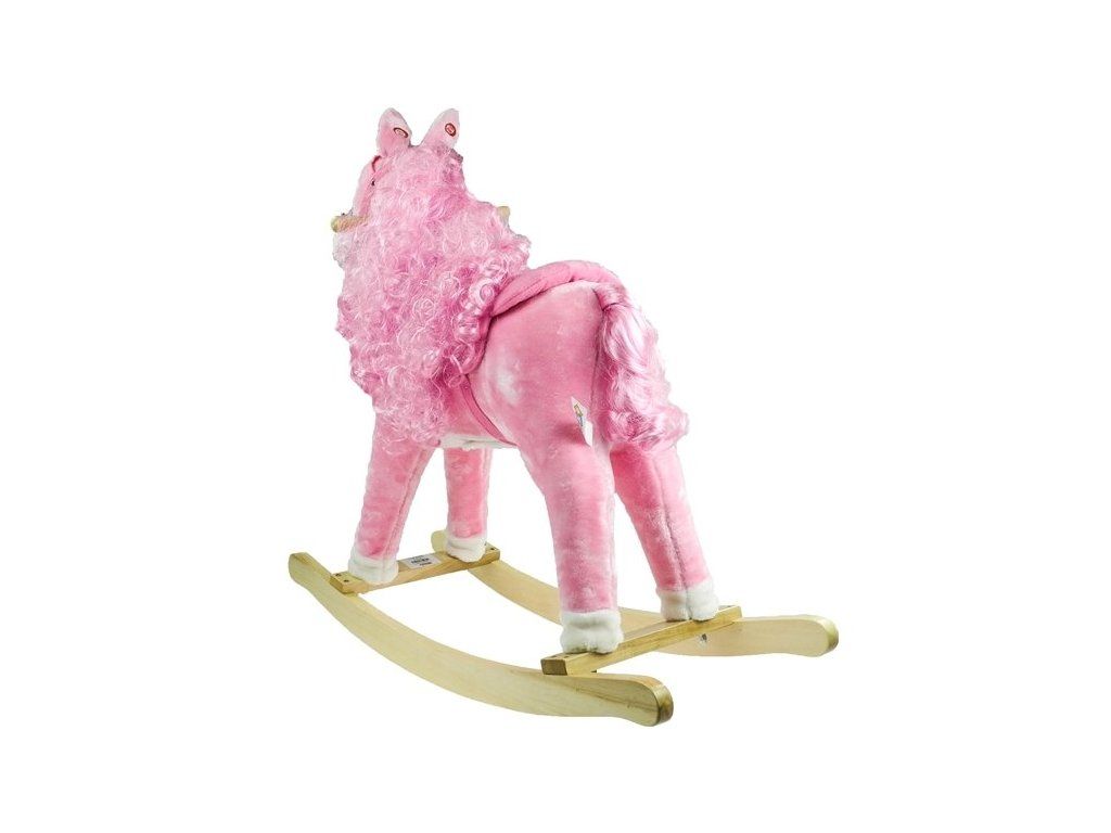 Houpací koník je vyrobený z měkkého plyše, má dřevěné rukojeti a dřevěný podstavec. Vydává zvuky cvalu a řehtání. Skvělá hračka pro všechny malé princezny.