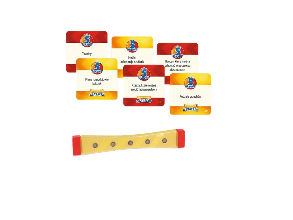 5 sekund ŠTAFETA je ještě více spontánní a nepředvídatelná verze kultovní hry, ve které rychle myslíte a rychle mluvíte. Přečtěte si nahlas výraz z karty, vykřiknete odpovědi a předáte štafetu vybranému hráči.