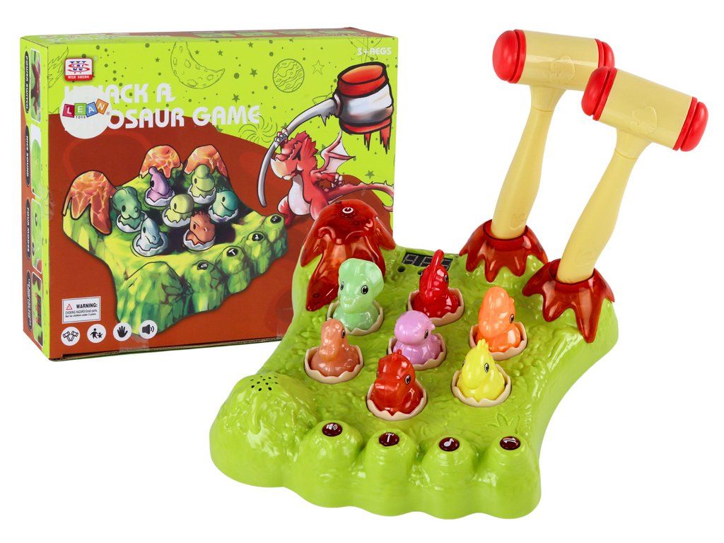 Navíc jsou součástí balení dvě robustní kladiva, což znamená, že si hru můžete užít s kamarádem nebo sourozencem. Tato kladívka byla speciálně navržena pro tuto hru, poskytují pevný úchop a přesné údery do dinosaurů na hrací ploše.