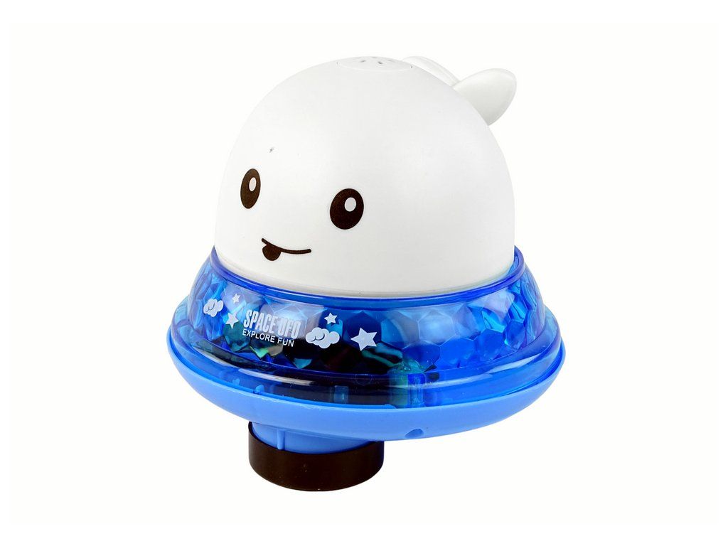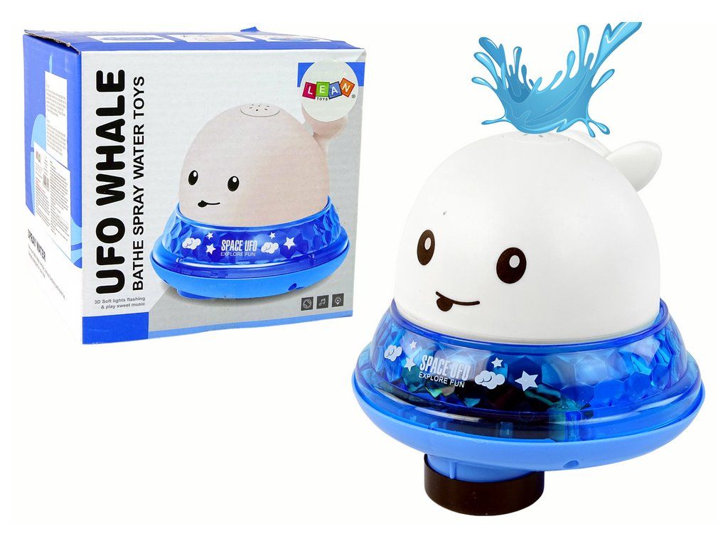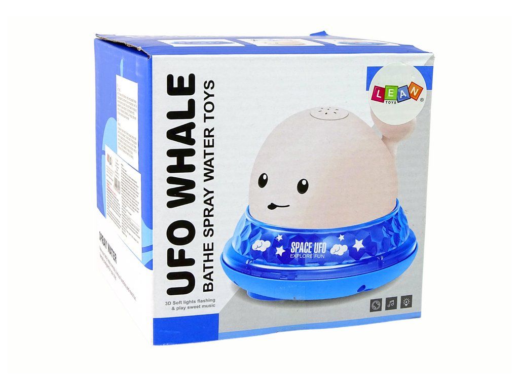 Když je hračka ponořena do vody, automaticky se aktivuje mini fontána. Navíc má stojánek, na který můžeme velrybu postavit. Díky němu se hračka hýbe, vydává zvuky a svítí.