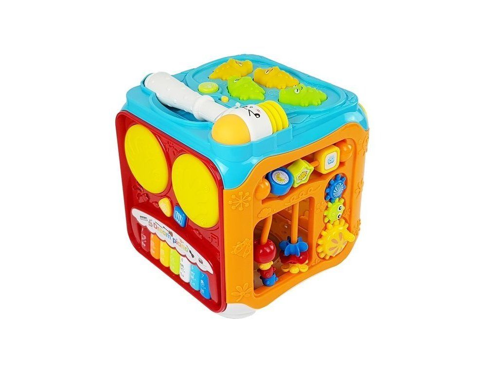 Interaktivní multifunkční kostka udělá radost všem batolatům. Kostka u dětí rozvíjí jemnou motoriku a trénuje koordinace ruka - oko.