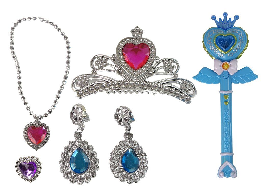 Krásná sada pro princeznu s kouzelnou hůlkou a šperky je perfektním dárkem pro dívku starší 3 let. Modrá hůlka se srdcem a korunkou vám svými interaktivními funkcemi vykouzlí hodiny nezapomenutelné zábavy.