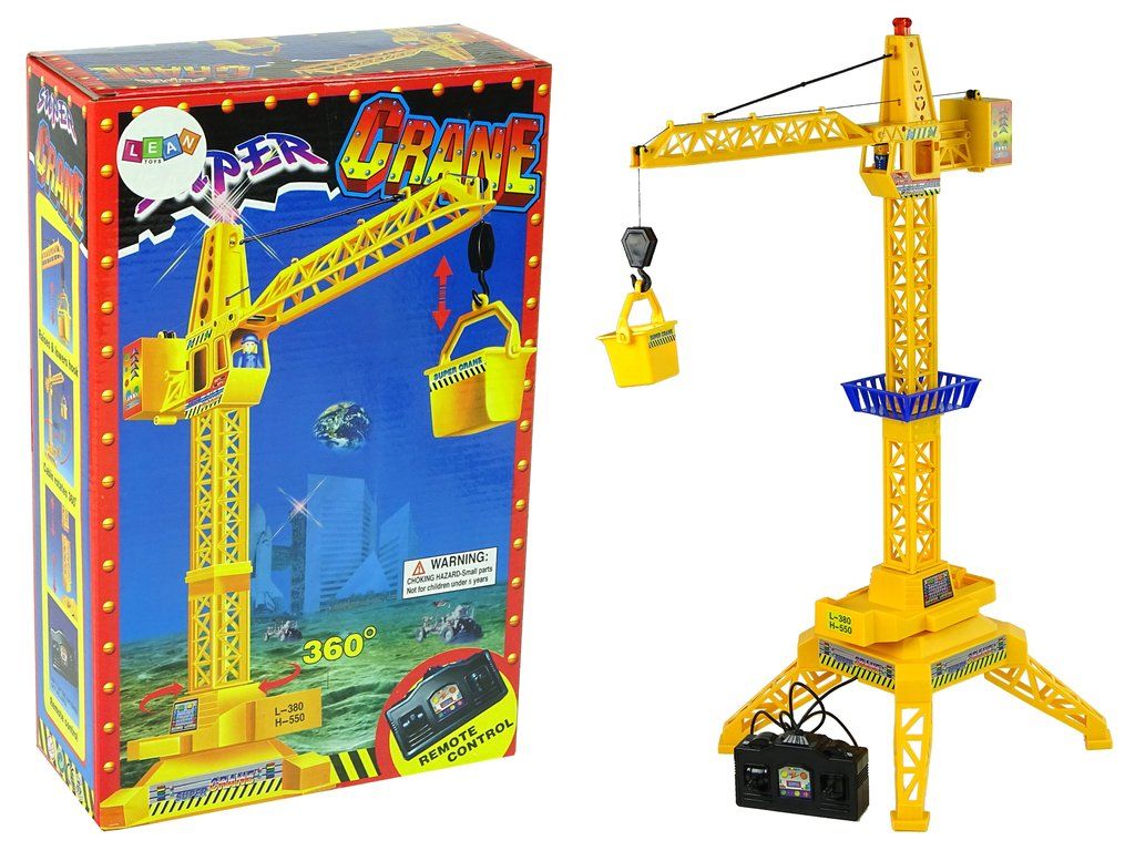 Jeřáb na dálkové ovládání má otočnou kabinu o 360°. Na konci ramene jeřábu je umístěn háček, který umožní jeřábu zvedat kontejner, který je součástí balení. Dálkový ovladač je propojen s jeřábem pomocí kabelu o délce 100 cm.