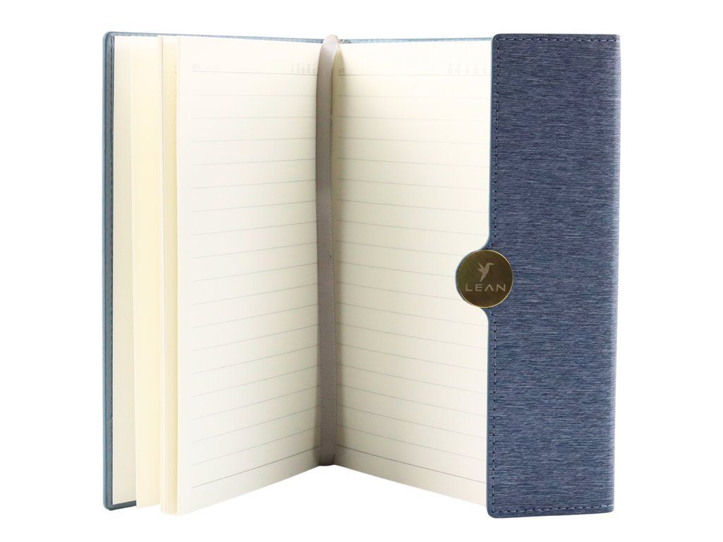 Elegantní kancelářský zápisník formátu A5 s magnetickým uzávěrem a šedým potahem spojuje styl a funkčnost. Jeho pevné magnetické zapínání chrání obsah před nechtěným otevřením a znečištěním, zatímco vysoce kvalitní tvrdý potah zajišťuje dlouhou životnost.