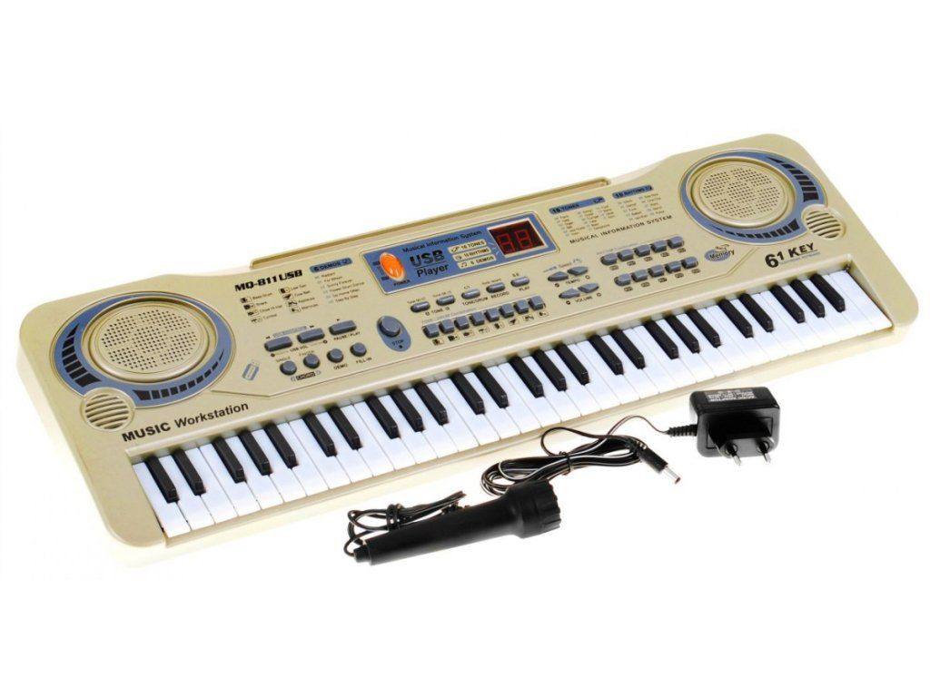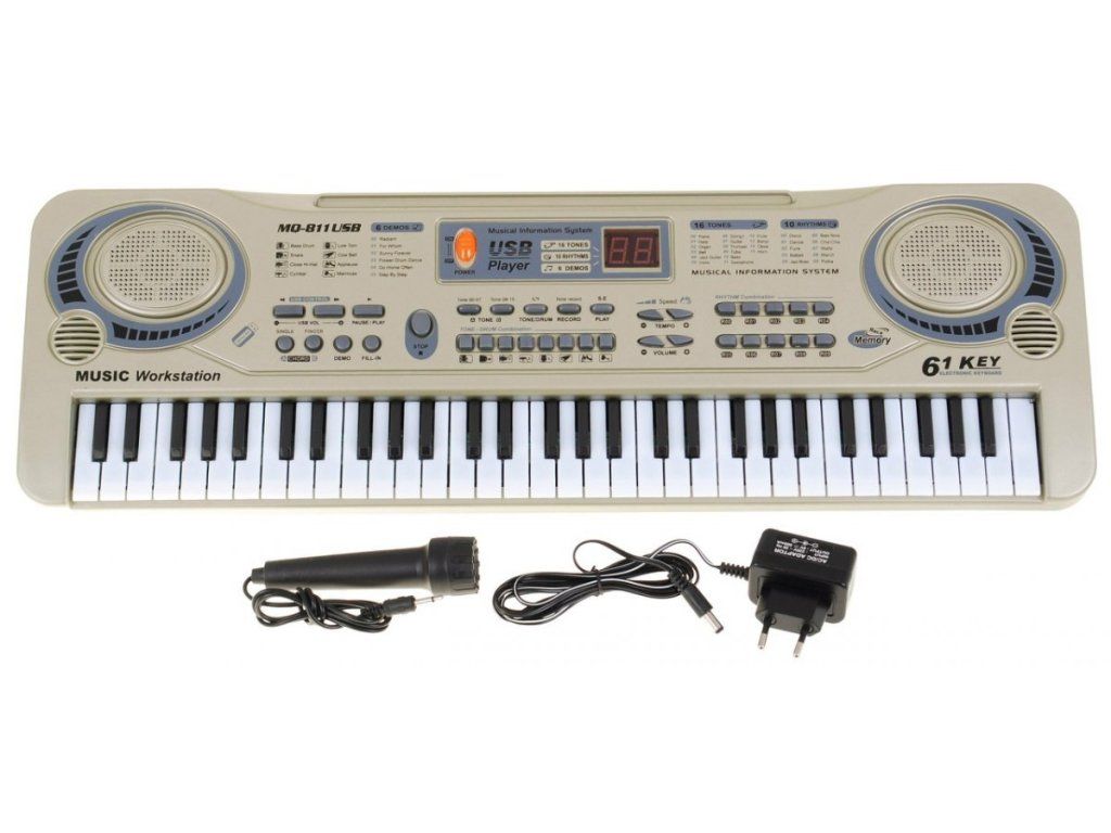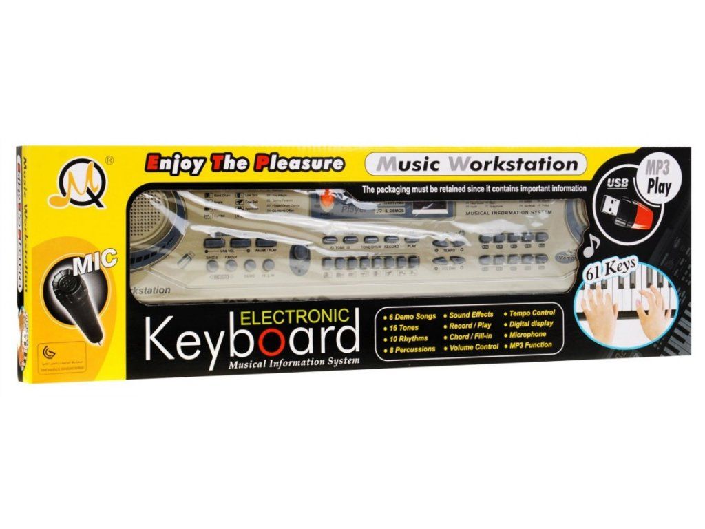 Klávesy s mikrofonem jsou přenosné, vyrobené k kvalitního odolného plastu. V sadě se nachází také mikrofon a síťové napájení. Sada je kompletní, nemusíte nic dokupovat. Vhodná věková kategorie od 3 let. Výrobek má evropský certifikát CE.