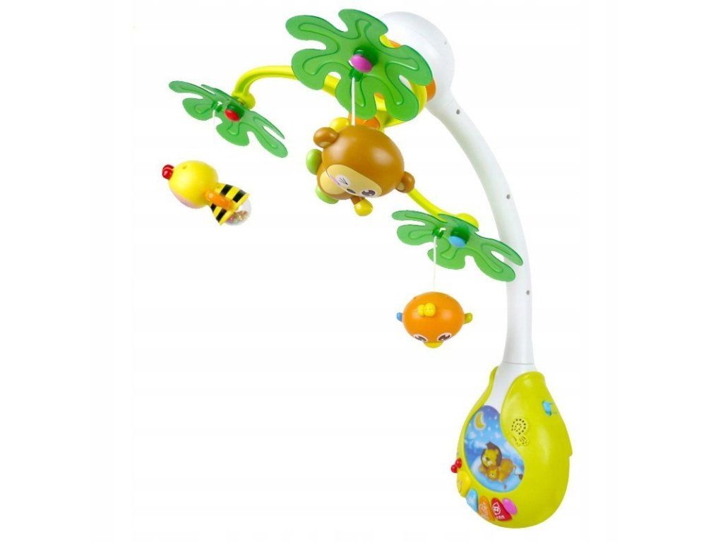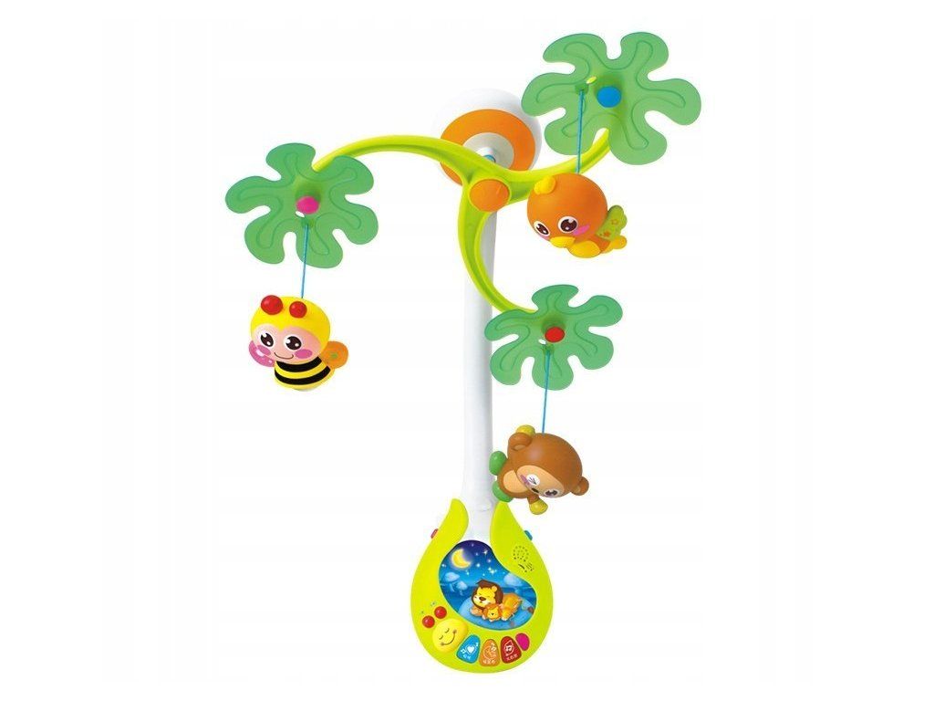 Kolotoč s melodií uklidní batole a pomůže mu usnout po náročném dni. Malé dítě fascinuje svět kolem sebe. Barevné hračky vzbuzují zájem, cvičí zrak a rozvíjejí motorickou koordinaci. Usínání v postýlce bude nyní velmi příjemné. Kromě toho se batole bude cítit bezpečněji, když se nad postýlkou rozsvítí světýlko. Hračka je napájena bateriemi 4 x 1,5V - není součástí balení. Hračka je určena pro děti od 3 měsíců a má certifikát CE.