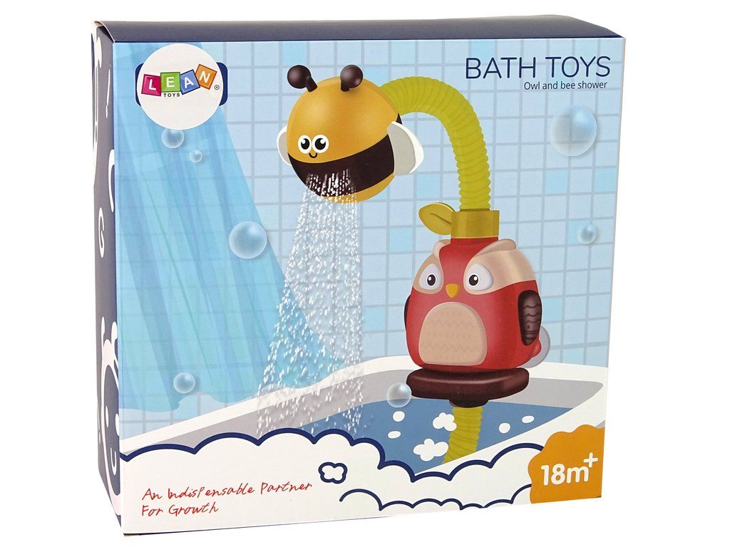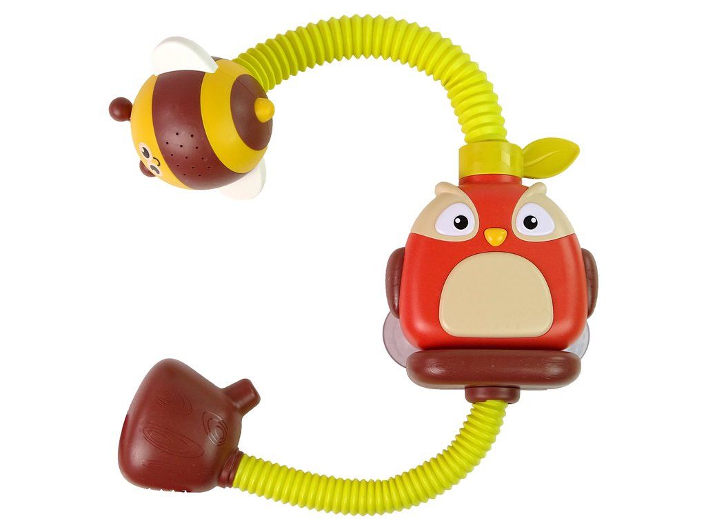 Sovička má na zadní straně přísavky pro připevnění k vaně. Spodní část hračky by měla být ve vodě. Jakmile je hračka připevněna, stačí stisknout hubici, spodní konec nasává vodu směrem nahoru, dokud nevyteče ze sprchy ve tvaru včely.