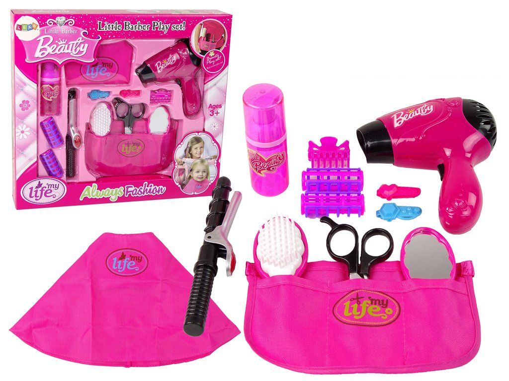 Sada se skládá z prvků přizpůsobených malým ručkám dítěte. Obsahuje hračkářský fén a kulmu, realisticky vypadající plastové nůžky, růžový hřeben a zrcátko a také kadeřnickou zástěru, ve které můžete nosit výše zmíněné doplňky.