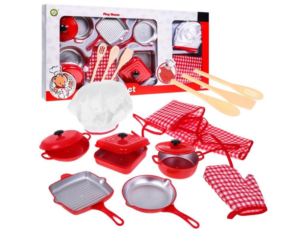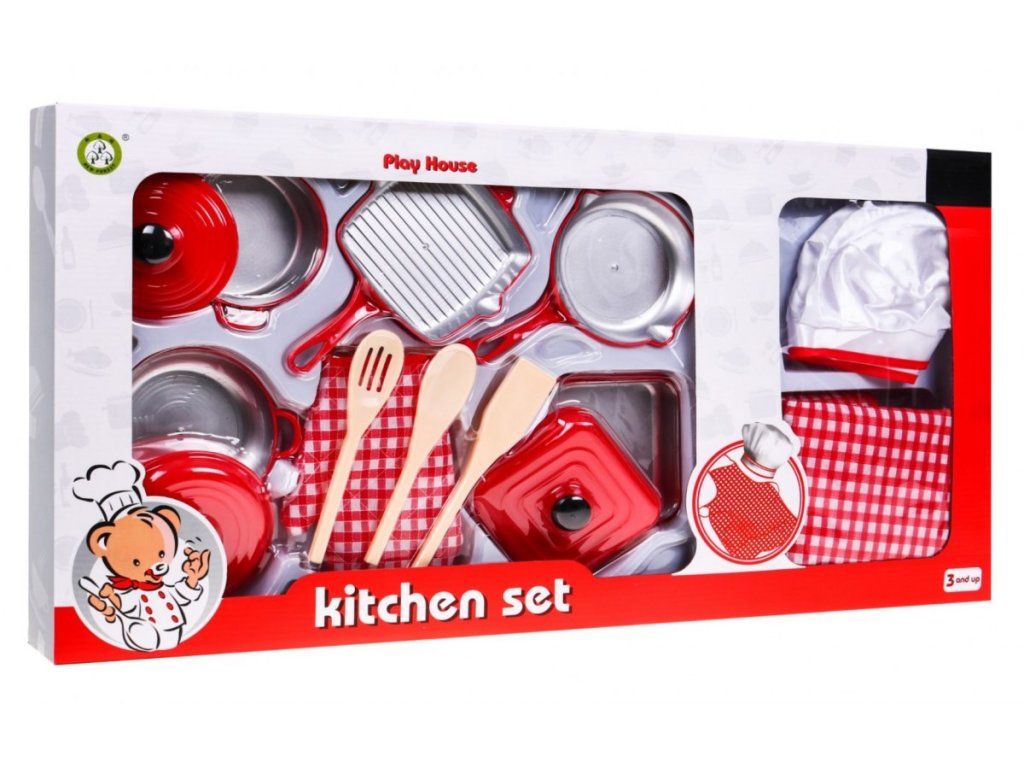 Tato sada obsahuje kuchyňské náčiní a další příslušenství skutečného kuchaře. Jednotlivé prvky kuchyňské sady jsou vyrobeny z vysoce kvalitních materiálů, v realistických barvách a tvarech a s rozměry, které dokonale ladí s dětskýma rukama. Tato 14-dílná kuchyňská sada je vhodná pro děti od 3 let.