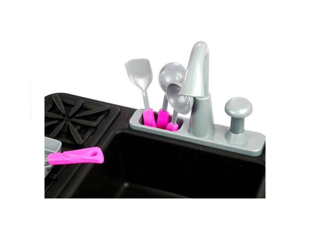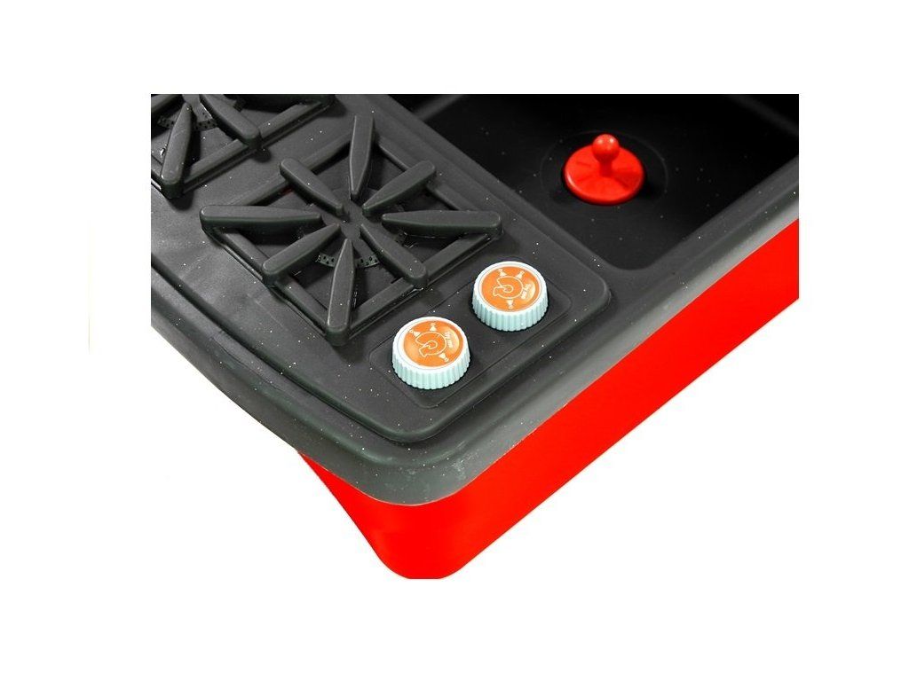 Dřez je napojen na sporák se dvěma hořáky . Hned pod nimi jsou dva knoflíky, které při otočení vydávají specifický zvuk. Děti se díky nim mohou zabavit napodobováním dospělých, kteří připravují chutná jídla, a také se naučit bezpečnostní pravidla platná v každé kuchyni.