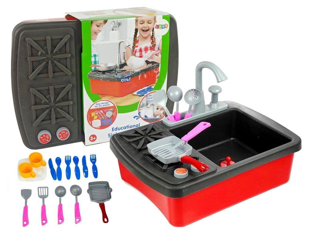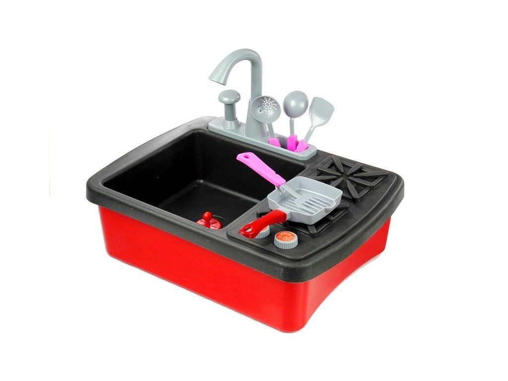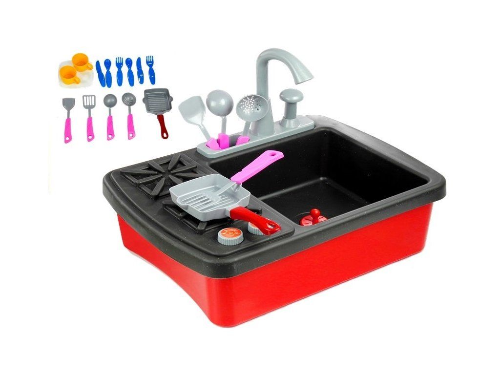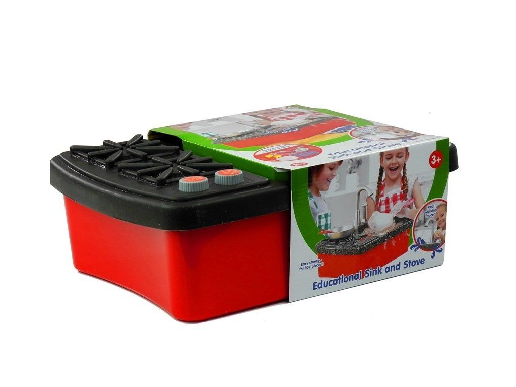 Sada hraček, což je sporák s dřezem , má řadu výhod. Hlavní výhodou dřezu je možnost připojení kohoutku na vodu , takže dítě bude umývat nádobí samo. Sada se skládá z 10 doplňků, které do značné míry napodobují plnohodnotné nádobí - talíře, šálky a příbory. Dítě si na ně při hře zvykne a mytí pro něj nebude větší problém. Bude to také skvělý způsob, jak u vašeho dítěte rozvinout návyk uklízet po jídle .