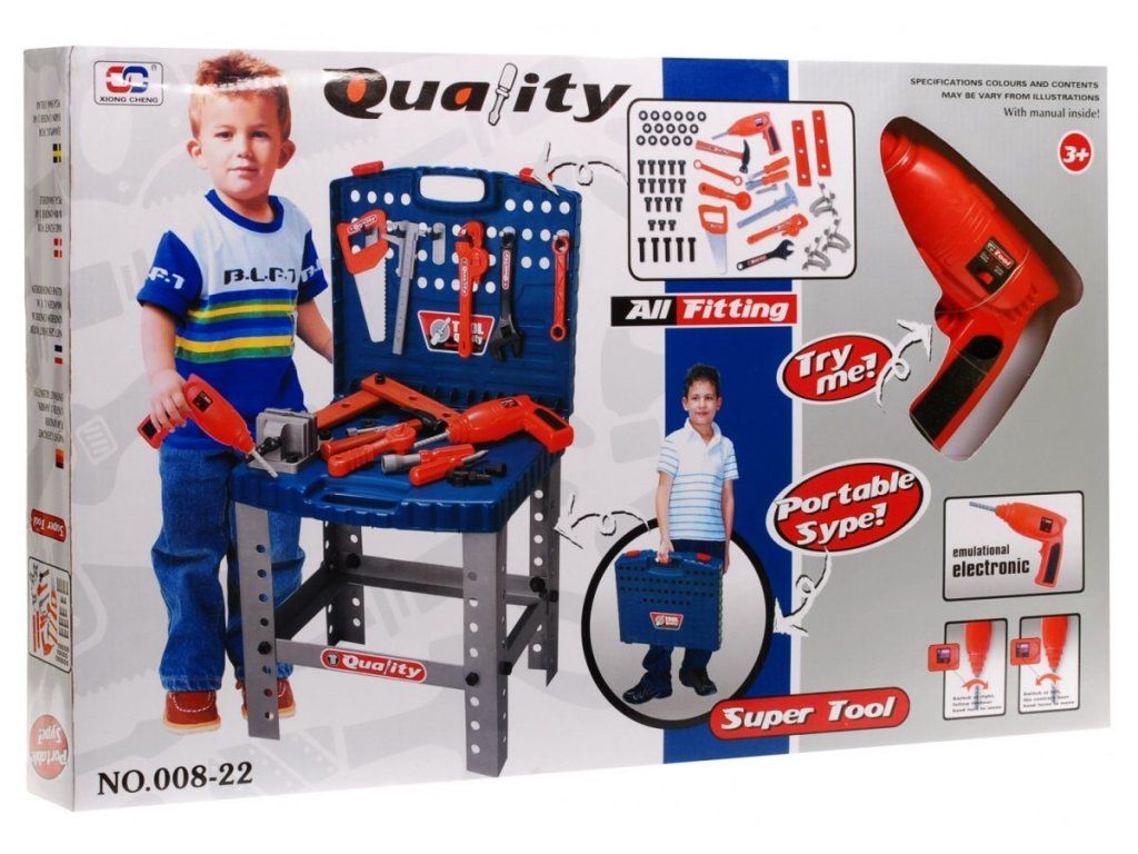 Pokud máte doma malého kutila, určitě se mu bude hodit tento kufřík s nářadím. Díky této sadě plné nářadí, se Váš chlapec bude cítit jako skutečný opravář. V kufříku naleznete celkem 31 různých pomůcek, které sice budou Vaše děti vnímat jako reálné, ale samozřejmě se o bezpečnost Vašich dětí nemusíte obávat, protože veškeré nástroje v kufříku jsou replikami z plastu. Tato opravářská sada zajistí dětem nejen legraci, ale také důležité první zkušenosti s nástroji.