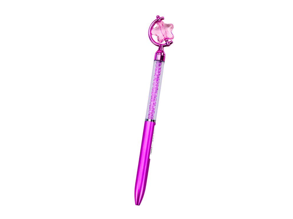 Tato elegantní propiska s hvězdičkou kombinuje styl a originalitu. Průhledné tělo s lesklými kamínky dodává luxusní vzhled, zatímco figurka vytváří jedinečný detail. Ideální jako praktický doplněk i designový dárek.