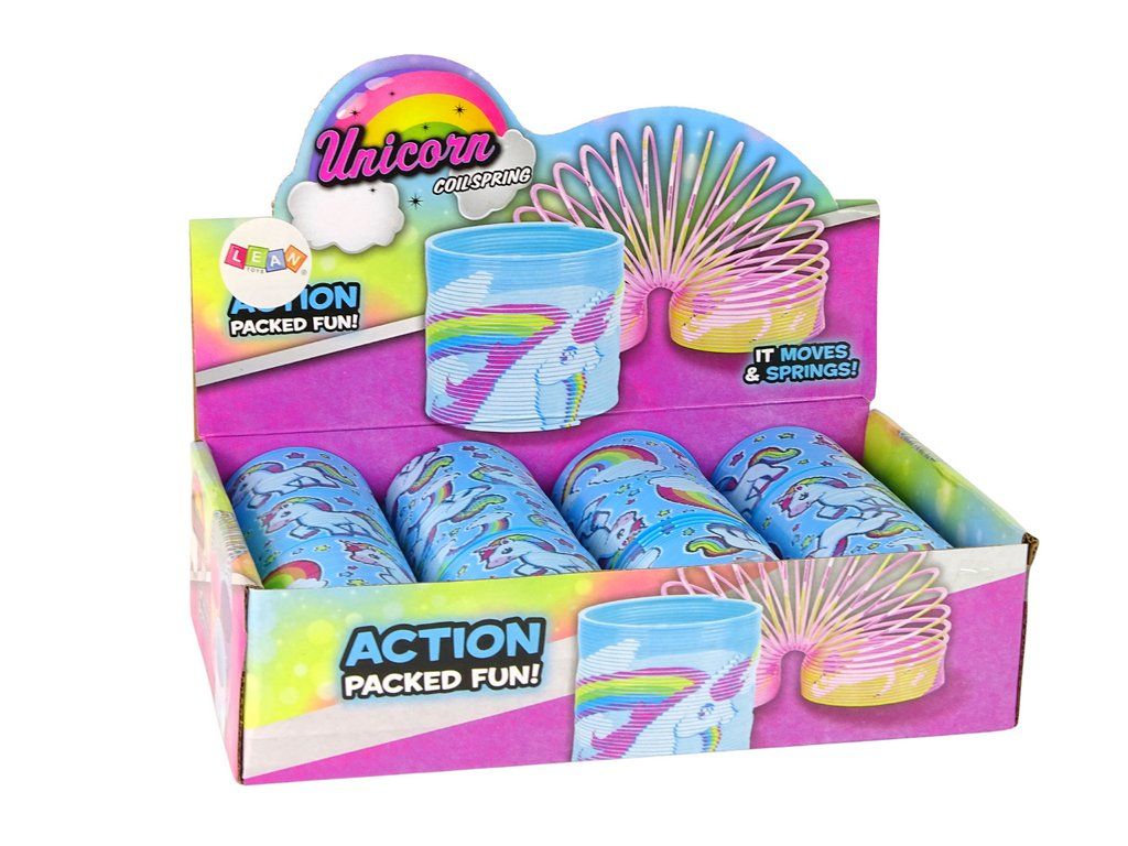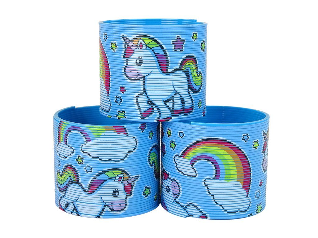 Představujeme kultovní modrou pružinku s roztomilým motivem jednorožce a duhy, v kompaktní velikosti 6 cm.