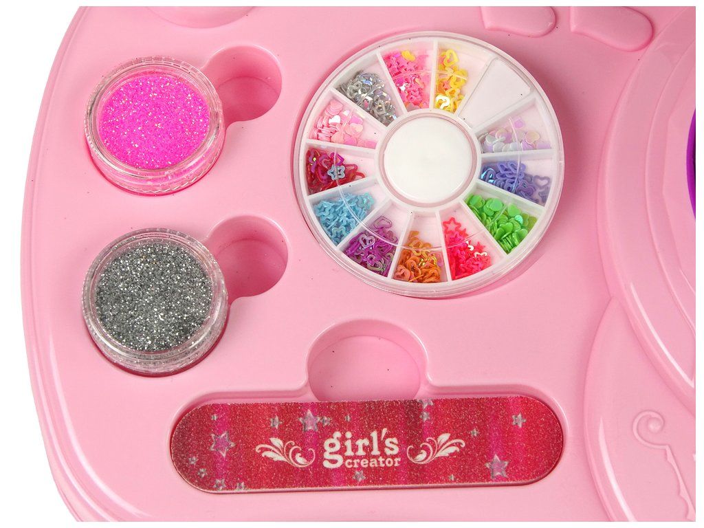 Barevná sada laků na nehty a třpytek se sušičkou si získá srdce všech dívek. Módní barvy a samolepky umožní vytvořit skvělou manikúru, kterou lze rychle a neinvazivně odstranit - funguje na principu samolepek.