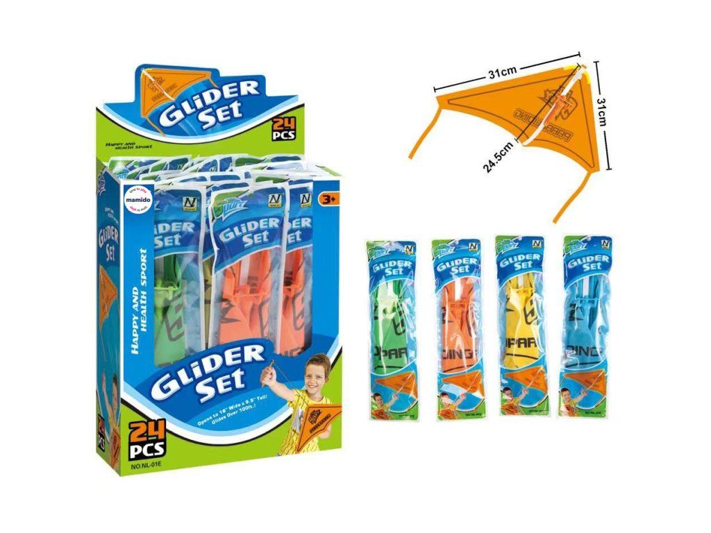 Barevná sada létající drak přináší dětem i dospělým spoustu zábavy venku na čerstvém vzduchu. Každý drak má rozpětí 31 × 31 cm a je vyroben z lehkého, pružného materiálu, který umožňuje dlouhé a plynulé klouzání vzduchem. Hračky se snadno skládají, jsou lehké a vhodné pro děti od 3 let.