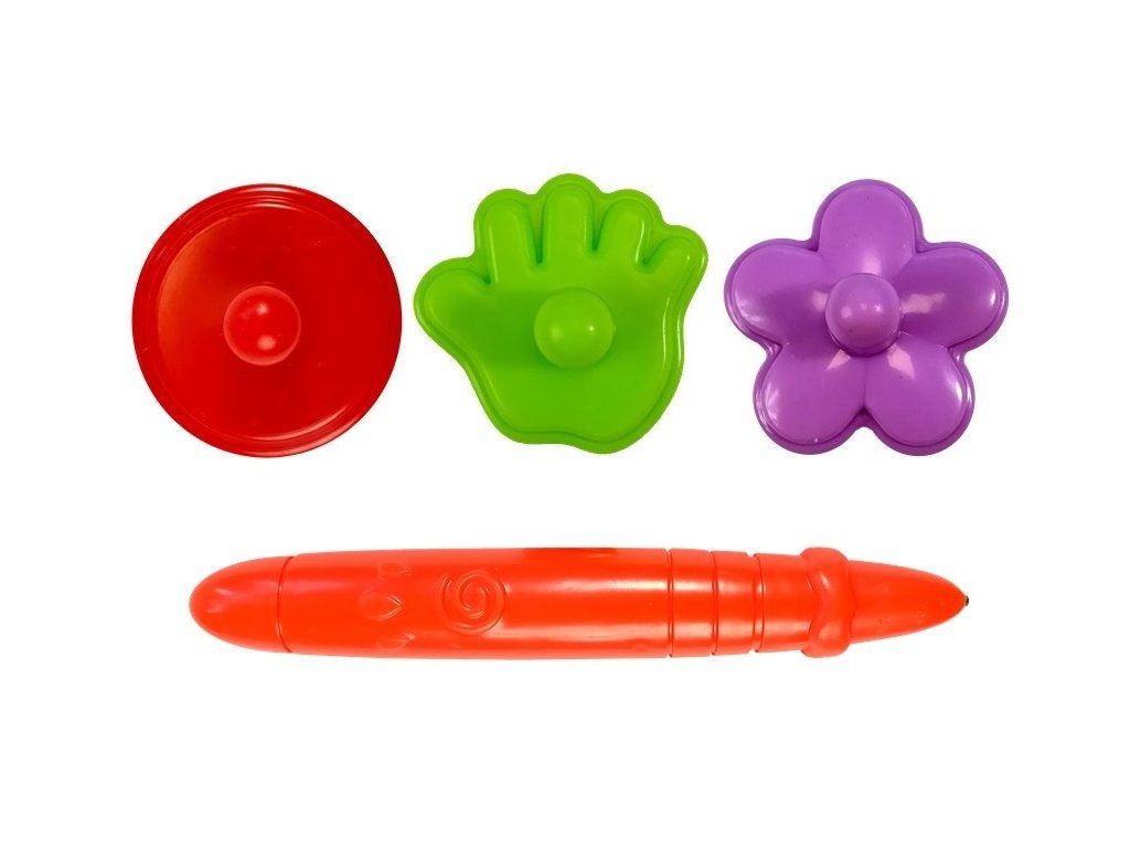 Představená sada se skládá z tabule, stylusu a tří razítek ve tvaru kruhu, tlapky a květu. V horní části tabule je rukojeť, která usnadňuje přenášení hračky.