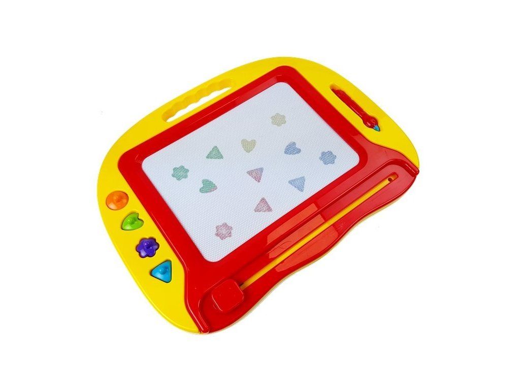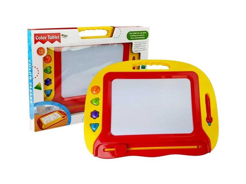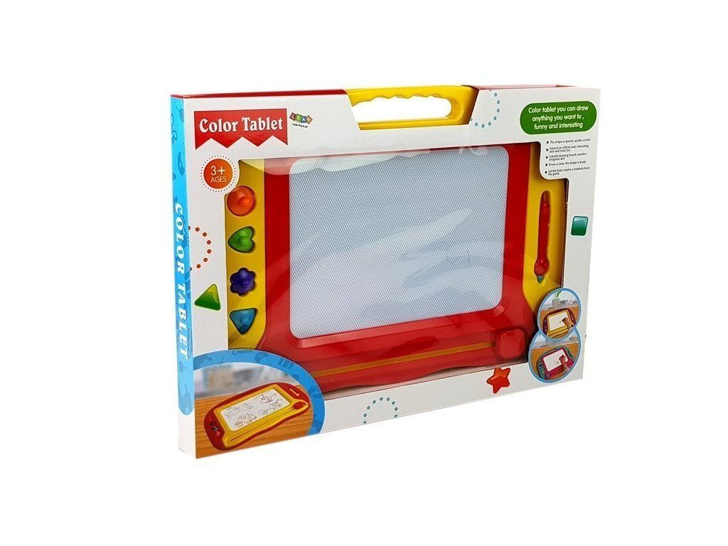 Kreslící magnetická tabule je univerzální a jednoduchá hračka pro všechny děti. Dítě se naučí estetickému cítění a rozvíjí své kreativní dovednosti. Sada se skládá z kreslící tabulky, magnetické tužky a 4 razítek.