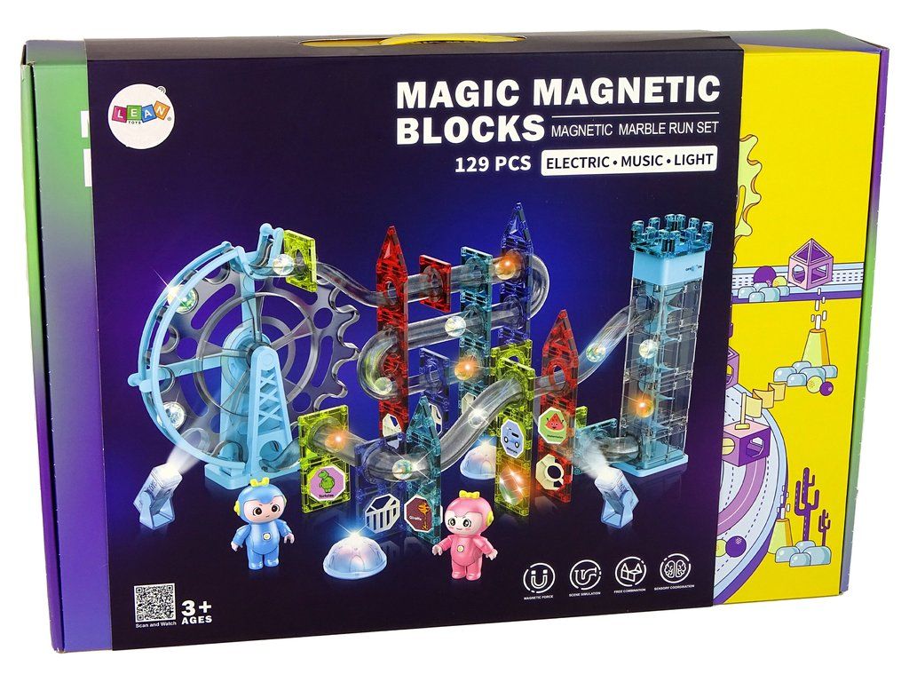 Magnetické kostky jsou vynikající vzdělávací hračkou, rozvíjí dětskou kreativitu, učí trpělivosti a soustředění. V brožuře, která je součástí sady, jsou uvedené ukázky dráhy. Některé komponenty mají zabudované osvětlení, aby hračka vypadala nápaditě.