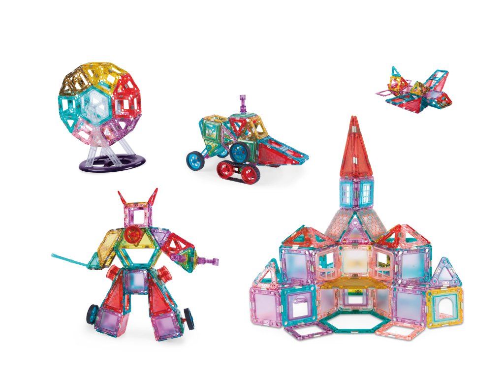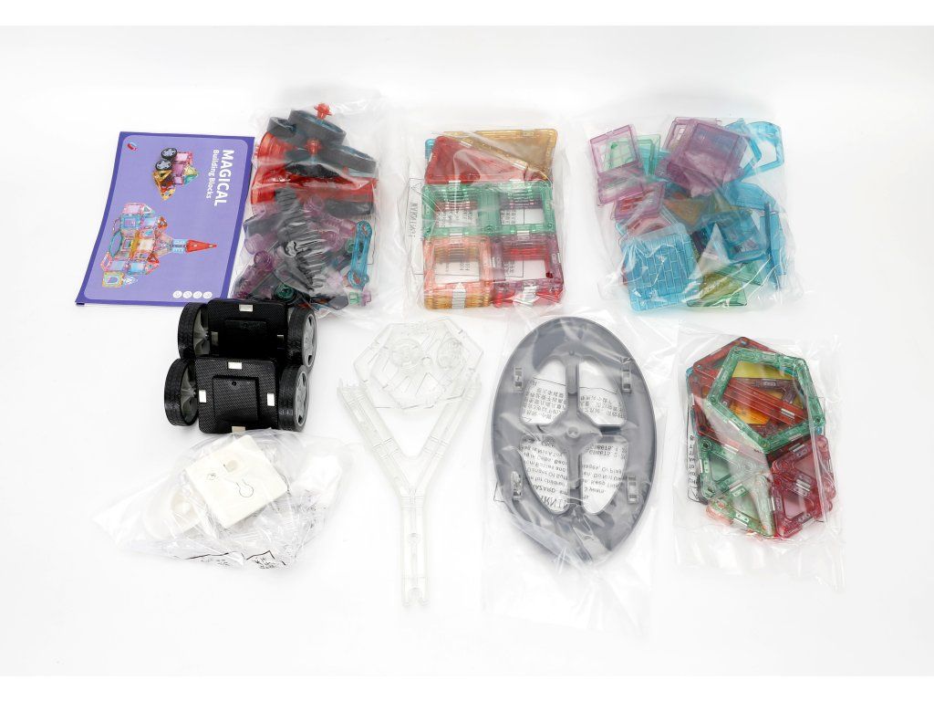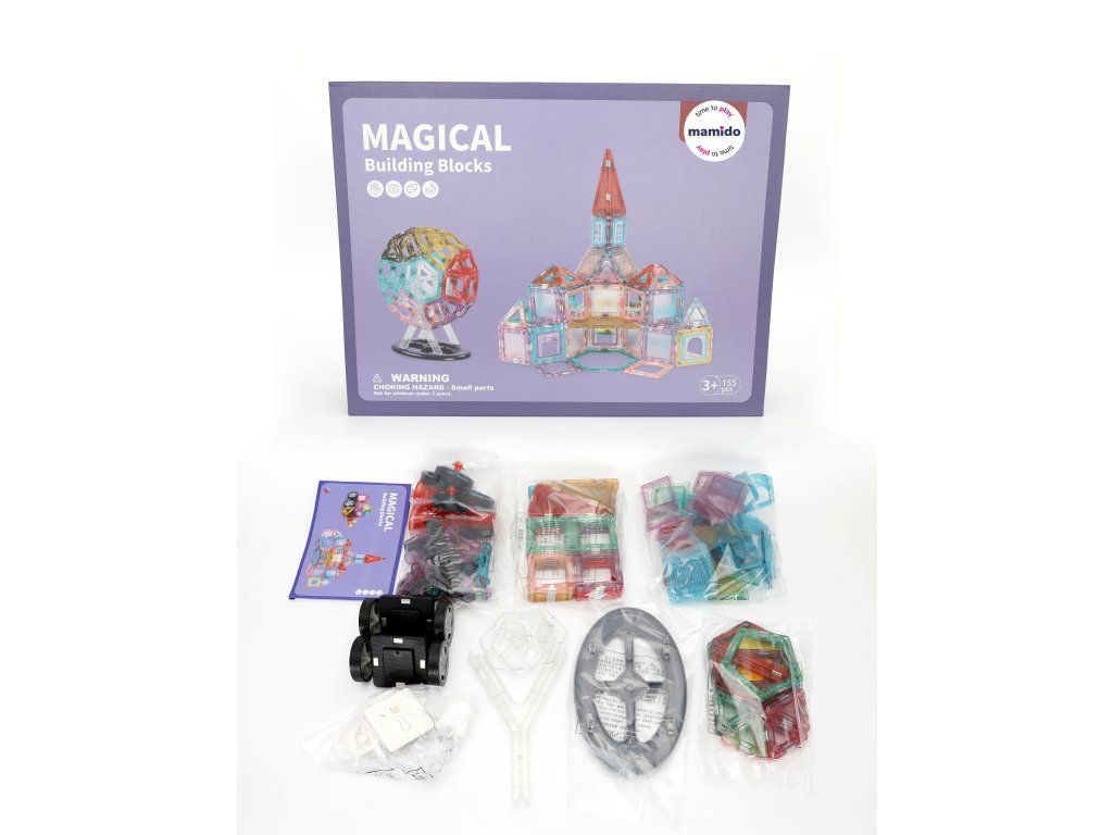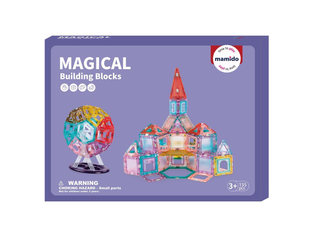 Rozviňte dětskou kreativitu a představivost s barevnou magnetickou stavebnicí Magical Building Blocks. Sada obsahuje 155 dílků různých tvarů – čtverce, trojúhelníky, obdélníky i speciální prvky, které umožňují stavět domy, věže, vozidla nebo originální 3D modely.